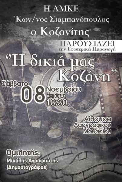 Στο πλαίσιο της συνέπειας που διακρίνει διαχρονικά την πολιτιστική δράση της εταιρείας μας στην περιοχή της Κοζάνης, δημιουργήσαμε μια Εσωτερική Παραγωγή με τον τίτλο με σκοπό την προβολή της πρωτεύουσας της Δυτικής Μακεδονίας στα ΜΜΕ, σε διαδικτυακά sites και φυσικά στο youtube και Vimeo.