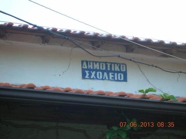 Στον ίδιο χώρο και το Δημοτικό Σχολείο. Έρημο τώρα από μαθητές. Οι παιδικές φωνές τους δεν ακούγονται πια σ’ αυτό και η φωτιστική παρουσία του δασκάλου δεν υπάρχει. Ναός, σχολείο, καφενείο, πλατεία, μνημείο πεσόντων, όλα σε ένα ενιαίο, ανοιχτό χώρο, όπου η γνώση συνοδεύει την ανθρωπιά, το ήθος, την ανοιχτή σχέση με τον άλλο, τη συν-εργατικότητα, τον πολιτισμό, την ιστορία, την παιδεία…
