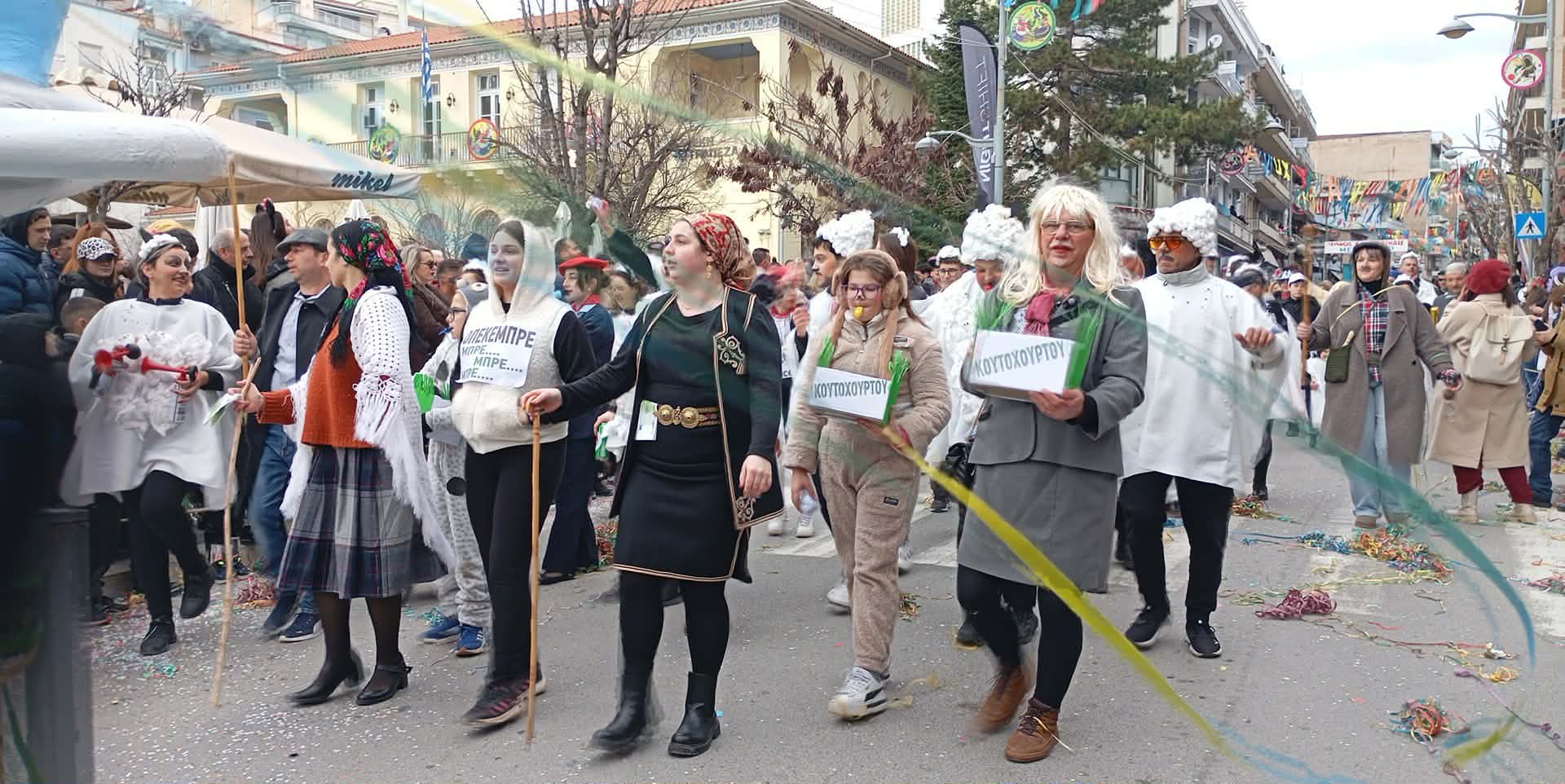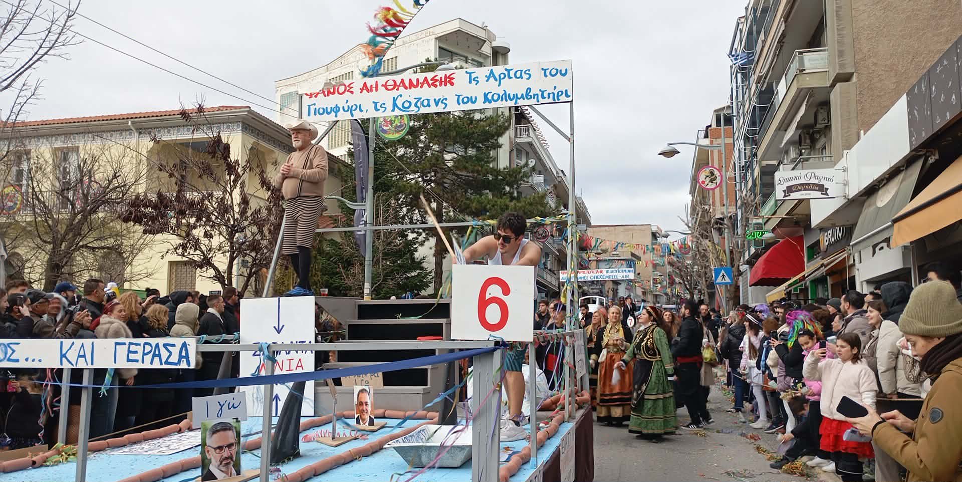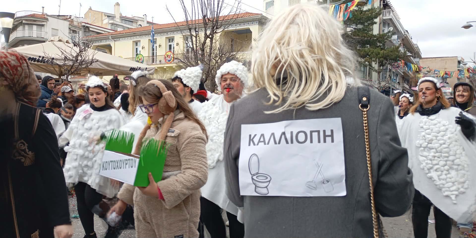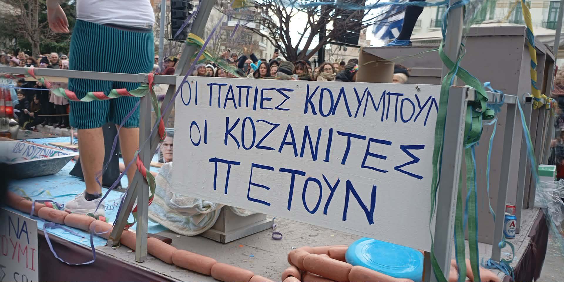 Με καυστικό χιούμορ και σαφείς υπαινιγμούς για το ζήτημα των επιδοτήσεων, ομάδα καρναβαλιστών στην Αποκριάτικη Παρέλαση της Κοζάνης