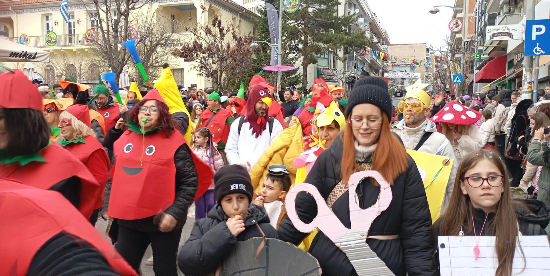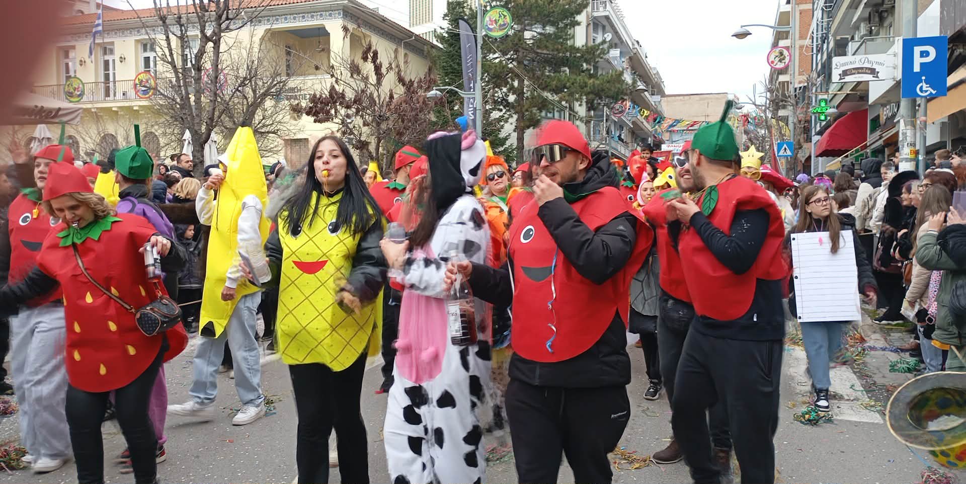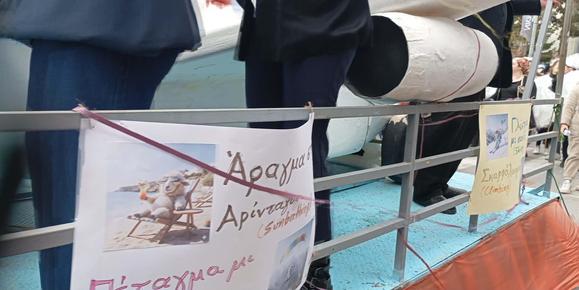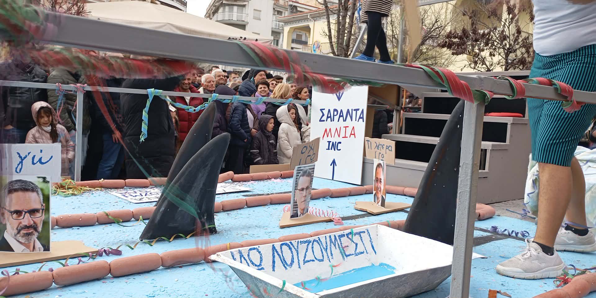 Με καυστικό χιούμορ και σαφείς υπαινιγμούς για το ζήτημα των επιδοτήσεων, ομάδα καρναβαλιστών στην Αποκριάτικη Παρέλαση της Κοζάνης
