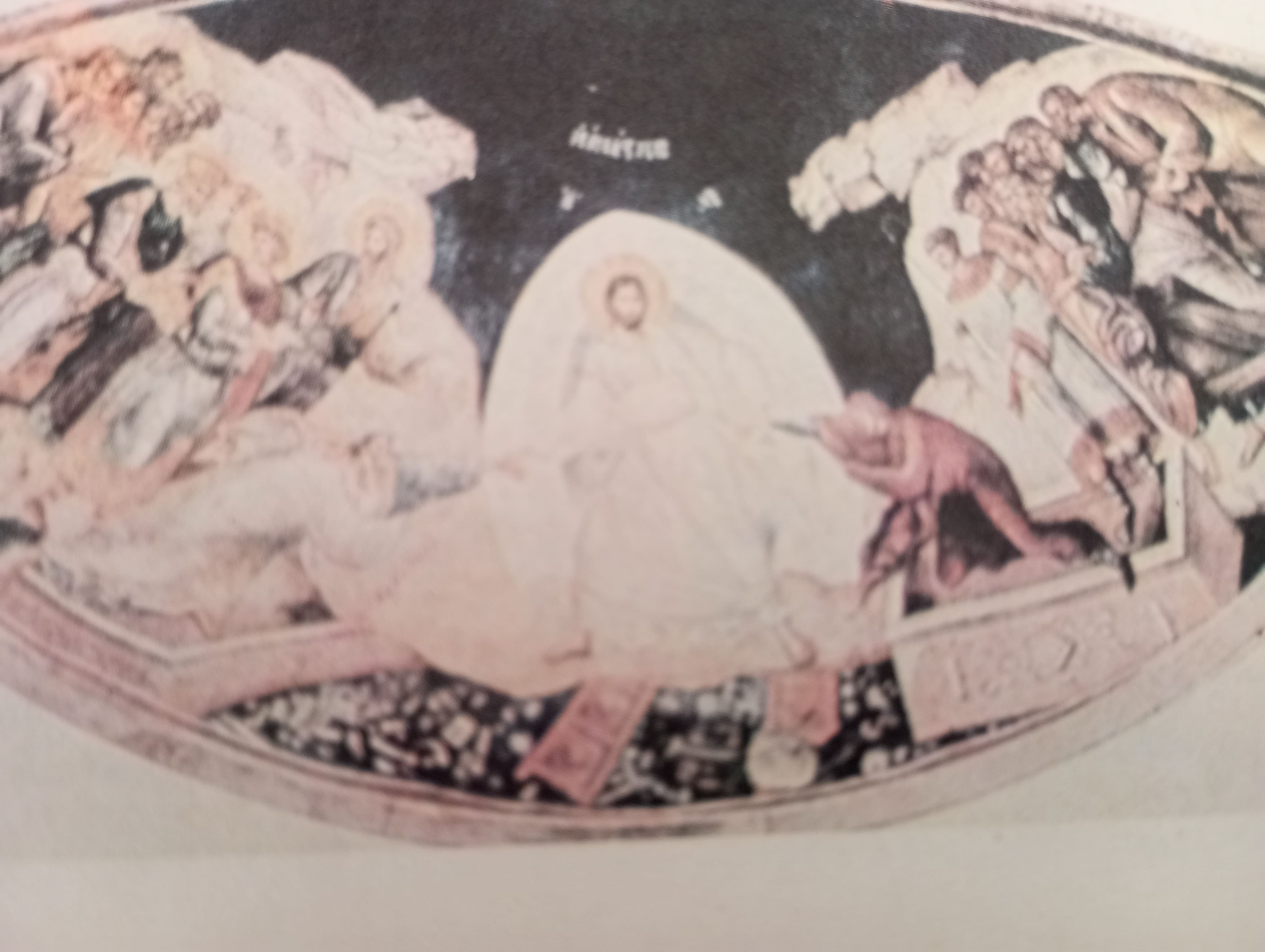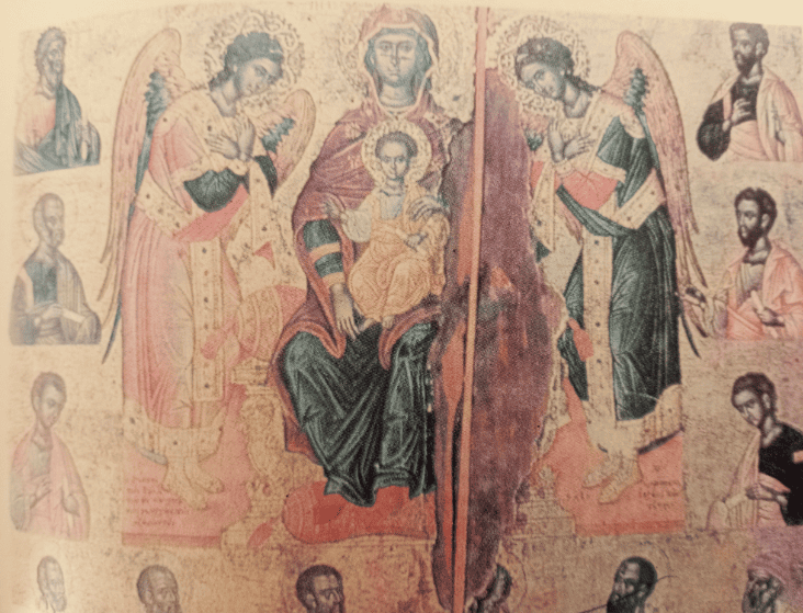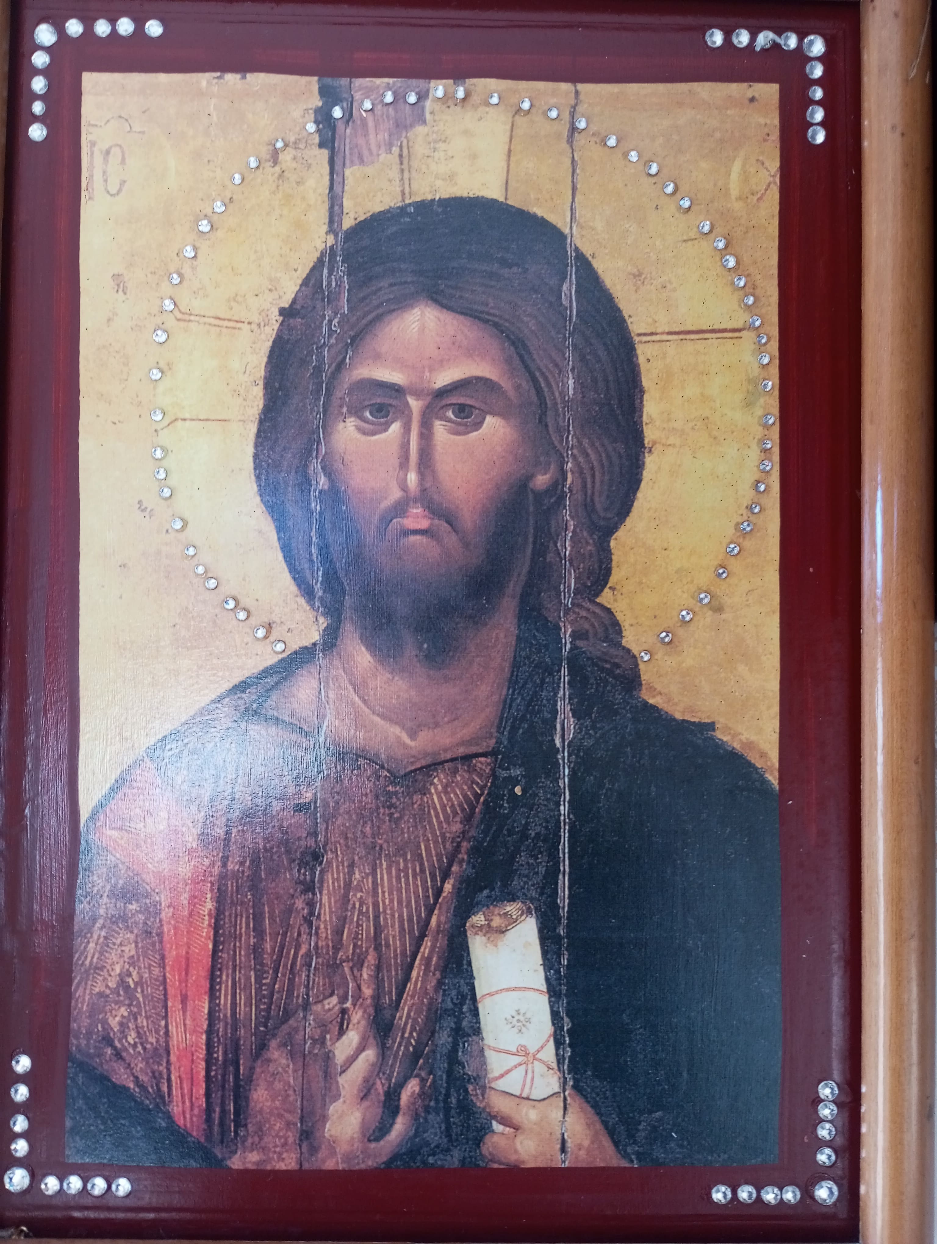 (=Απέναντι από την εικόνα σου, Παναγία Χρυσοπηγή, υπάρχει εικόνα του Χριστού, στην οποία φαίνεται ( από το εκ λόγχης τραύμα του) το αίμα να χύνεται στο Άγιο Δισκοπότηρο. Το Άγιο Δισκοπότηρο : Δισκοποτήριον, εις τα μεσαιωνικά χρόνια.