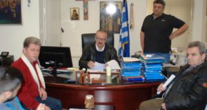 Τέλος, ο καλλιτέχνης του έργου κ. Κικώτης έδωσε στον κ. Δήμαρχο μια μικρογραφία του μνημείου, ως ευχαριστήριο για τη συνεργασία τους και για την τοποθέτηση του μνημείου.