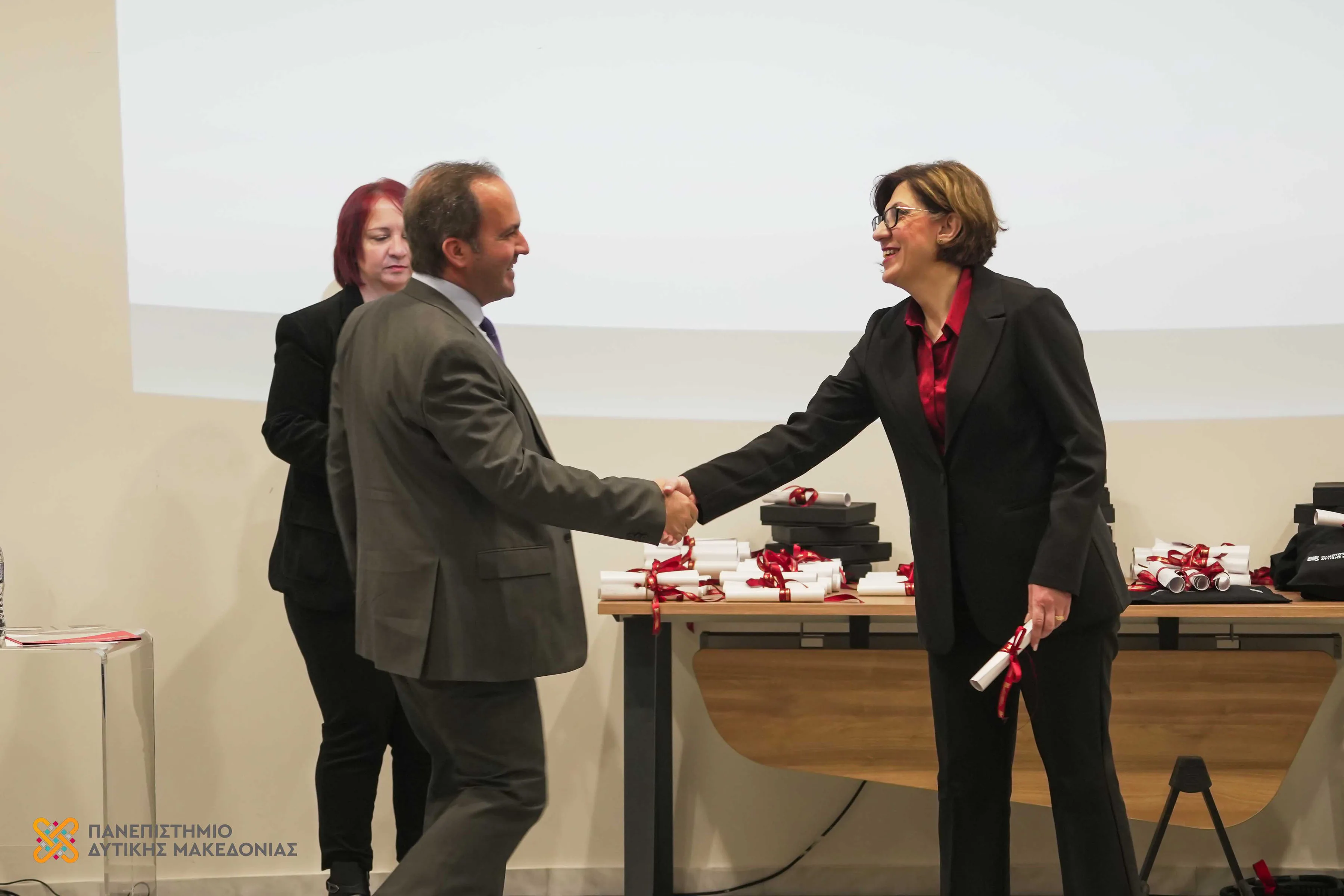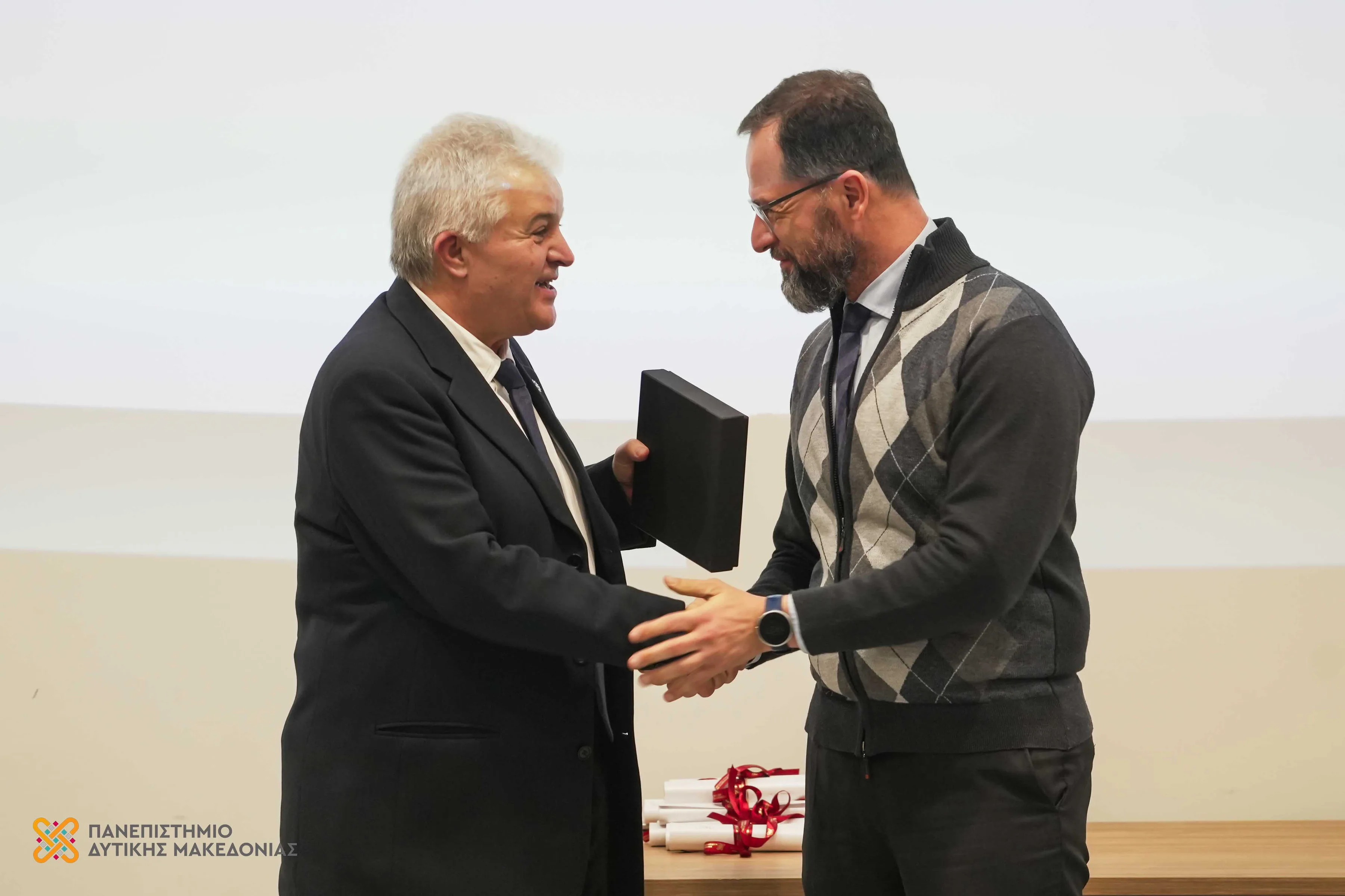 Τόνισε, τέλος, ότι η αναγνώριση των τιμώμενων μελών αποτελεί ταυτόχρονα και αναγνώριση της συλλογικής προσπάθειας της πανεπιστημιακής κοινότητας. Ευχαρίστησε καθένα και καθεμία που συμβάλλει καθημερινά στην εξέλιξη του Ιδρύματος, όσους και όσες εμπνέονται και συμμετέχουν ενεργά στη διαμόρφωση ενός Πανεπιστημίου με ισχυρές ρίζες στη Δυτική Μακεδονία και ανοιχτούς ορίζοντες στον κόσμο.