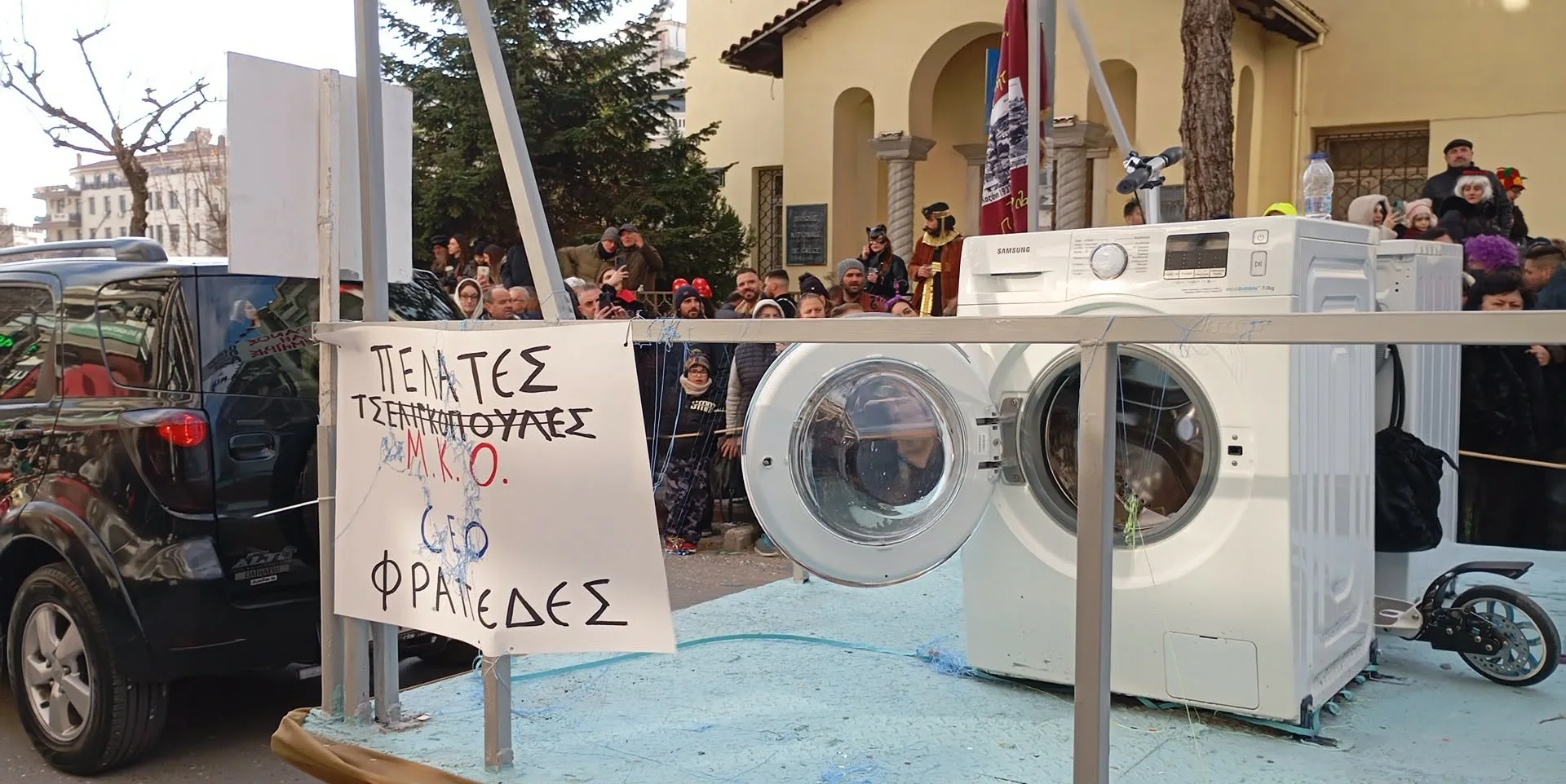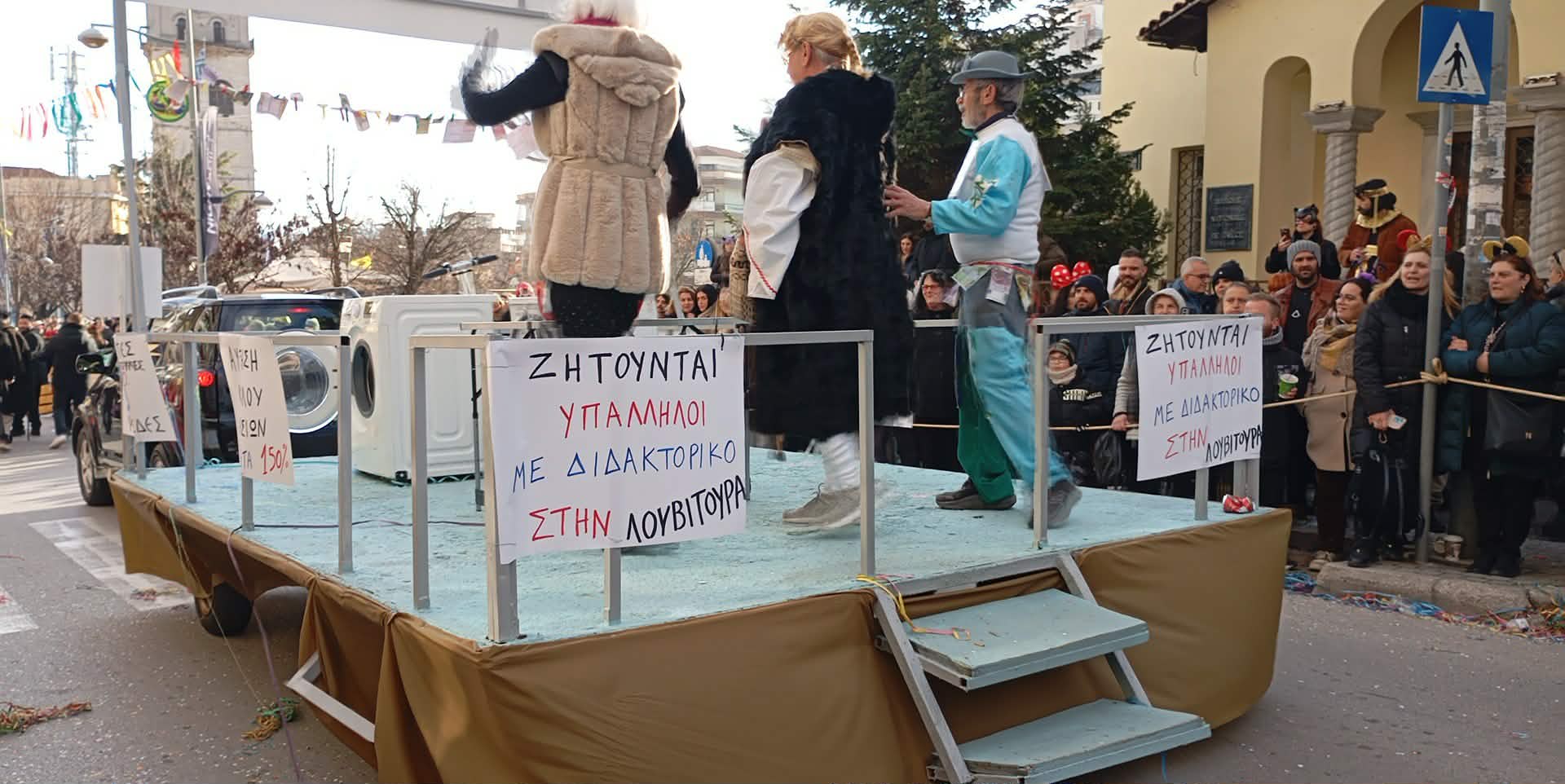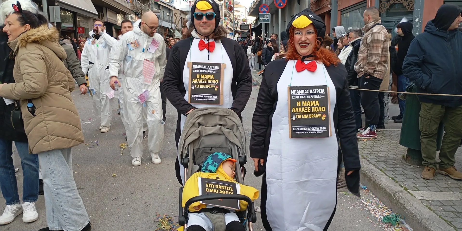 Αν κάτι απέδειξε για ακόμη μία φορά η Αποκριά της Κοζάνης, είναι ότι το χιούμορ των συμμετεχόντων δεν έχει ταβάνι. Στην παρέλαση ξεχώρισαν δεκάδες αυτοσχέδιες ταμπέλες