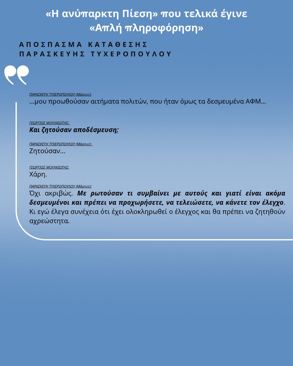 ΠΑΡΑΣΚΕΥΗ ΤΥΧΕΡΟΠΟΥΛΟΥ (Μάρτυς): Μου ζητούσαν πληροφορίες για το πώς έγιναν οι έλεγχοι, εάν είχα εντολή…