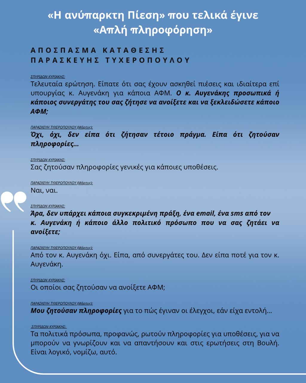 ΠΑΡΑΣΚΕΥΗ ΤΥΧΕΡΟΠΟΥΛΟΥ (Μάρτυς): … μου προωθούσαν αιτήματα πολιτών, που ήταν όμως τα δεσμευμένα ΑΦΜ…