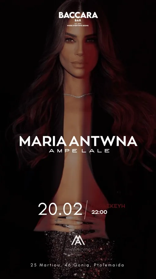 Το Baccara Bar υποδέχεται τη Μαρία Αντωνά για ένα μοναδικό ΑΜΠΕΛΑΛΕ πάρτυ την Παρασκευή 20/2.