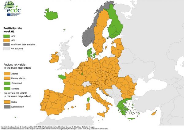 Υπενθυμίζεται ότι οι χάρτες του ECDC ανανεώνονται κάθε Πέμπτη, σύμφωνα με τη Σύσταση του Ευρωπαϊκού Συμβουλίου που έχει ως στόχο την εφαρμογή μιας συντονισμένης προσέγγισης μεταξύ των χωρών της ΕΕ όσον αφορά τον περιορισμό της ελεύθερης κυκλοφορίας για την αντιμετώπιση της πανδημίας.