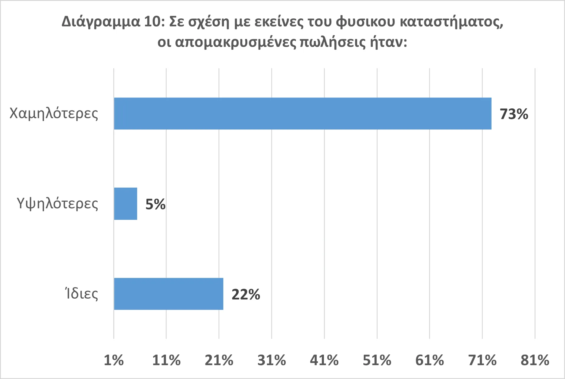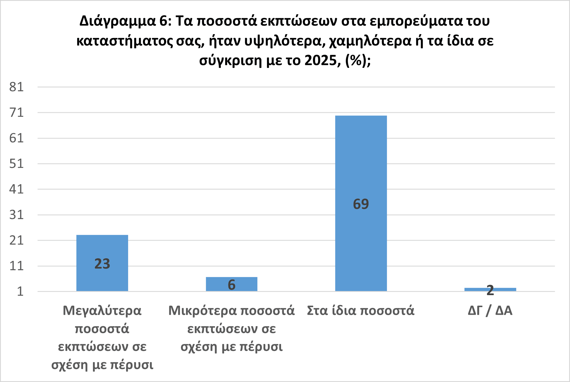 • Επτά στις 10 επιχειρήσεις υιοθέτησαν τα ίδια ποσοστά εκπτώσεων συγκριτικά με πέρυσι, ενώ 1 στις 4 ακόμη υψηλότερα (Διάγραμμα 6).