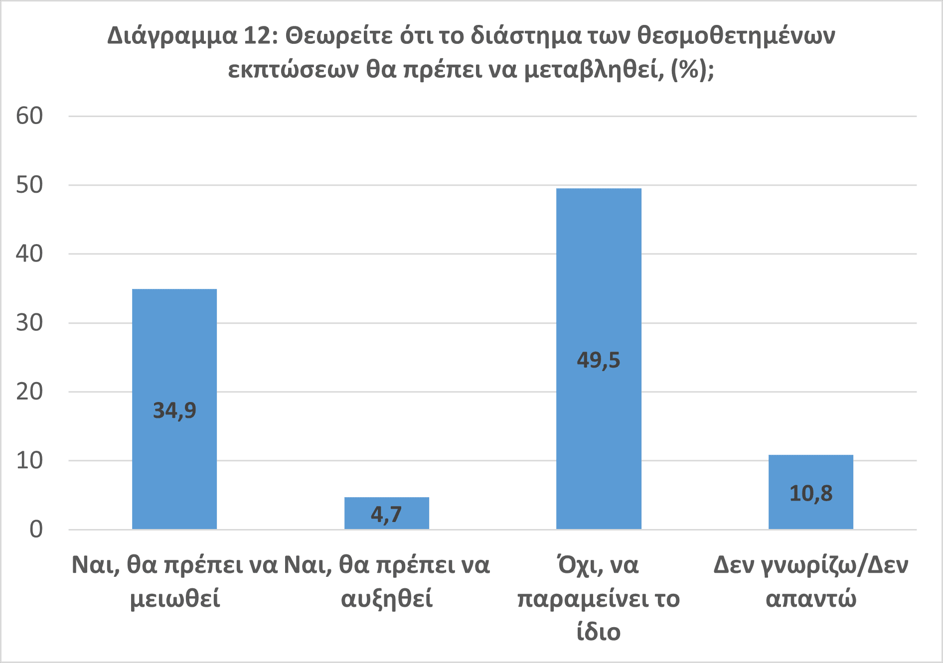 • Μια στις 3 επιχειρήσεις επιθυμεί μείωση της διάρκειας της εκπτωτικής περιόδου, γεγονός που θα μπορούσε να οδηγήσει σε διαβούλευση για το πλαίσιο λειτουργίας των εκπτώσεων (Διάγραμμα 12).