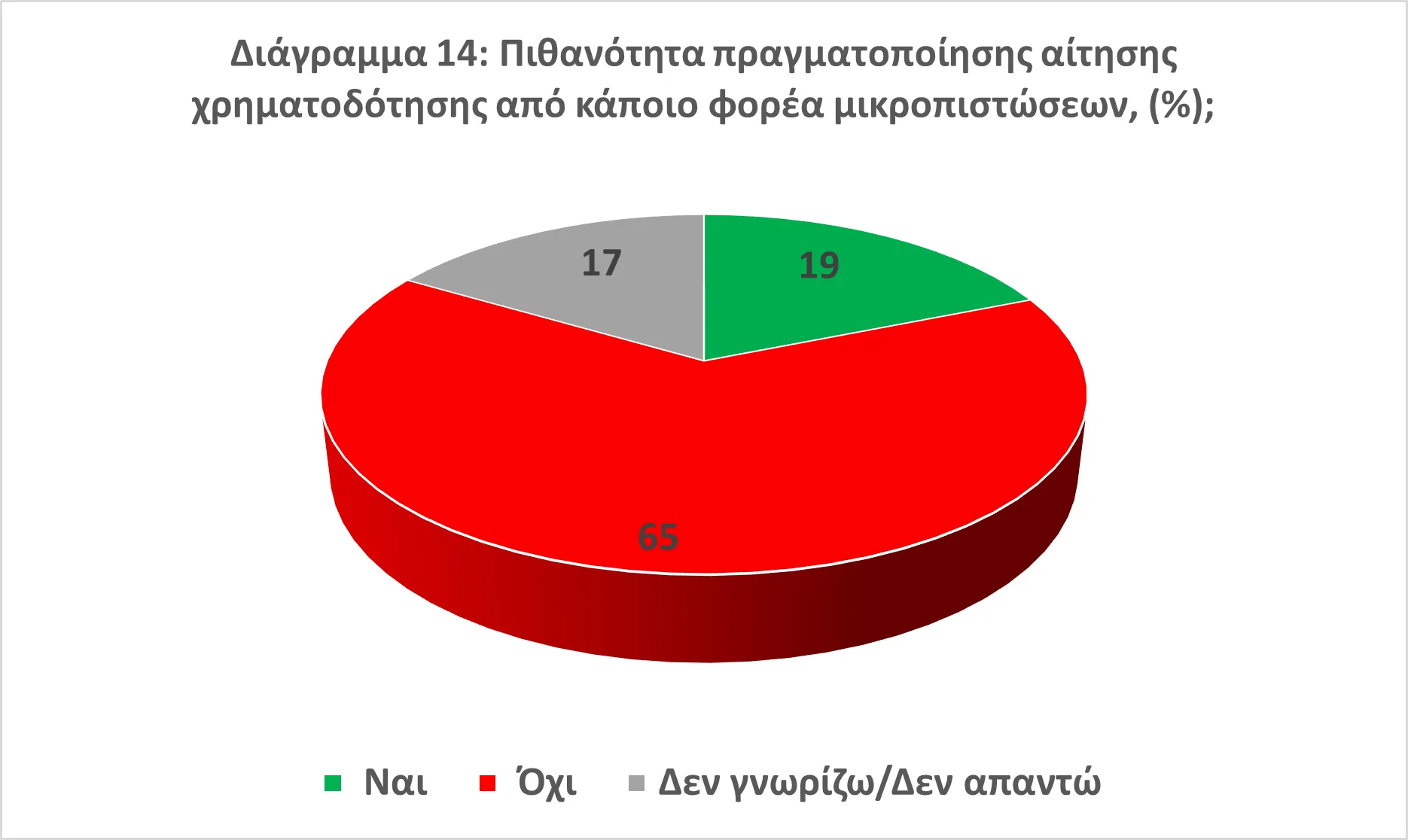 • Μόλις 4 στις 10 επιχειρήσεις εμφανίζονται ενημερωμένες αναφορικά με το χρηματοδοτικό εργαλείο των μικρο-πιστώσεων, αν και οι περισσότερες από τις ενημερωμένες (65%) δεν σκοπεύουν να αιτηθούν για σχετικό δάνειο (Διαγράμματα 13 και 14).