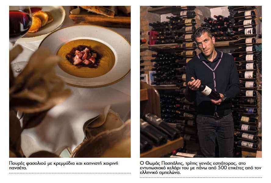 Κανένα δεν έφυγε όμως. Είναι η τρίτη γενιά που καταπιάνεται με το οικογενειακό εστιατόριο. Ο Θωμάς ασχολείται με το κρασί και έχει φτιάξει ένα αξιοζήλευτο κελάρι με πάνω από 500 ετικέτες από τον ελληνικό αμπελώνα, και έχει βάλει σκοπό να γευτούν όλοι τη σημαντικότερη τοπική ποικιλία, το Ξινόμαυρο. Ο Βαγγέλης μαγειρεύει στην κουζίνα και δίνει μεγάλη σημασία στις τοπικές πρώτες ύλες. Μέσα από τα φαγητά του μας γνωρίζει μαστιχωτά τοπικά τυριά, εξαιρετικά μανιτάρια, τα εμβληματικά φασόλια της περιοχής, τα χειροποίητα ζυμαρικά και φυσικά τις πιπεριές Φλωρίνης. Ακριβώς απέναντι από το εστιατόριο έχουν ανοίξει και έναν πανέμορφο παραδοσιακό ξενώνα.