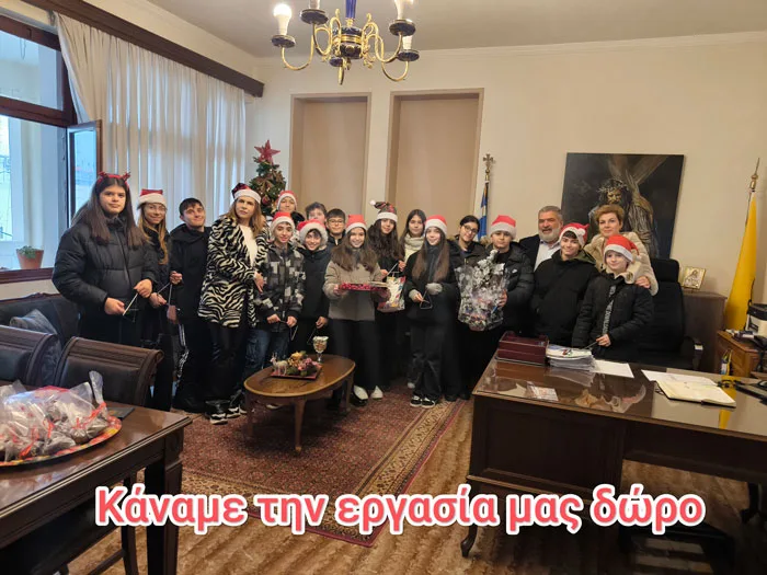 Στις 23-12-2025 ο Δήμαρχος Εορδαίας κ. Παναγιώτης Πλακεντάς υποδέχτηκε στο Δημαρχείο Εορδαίας μαθητές της Α’ τάξης του 1ου Γυμνασίου Πτολεμαΐδας που του έψαλλαν τα Τρίγωνα Κάλαντα στα Γαλλικά!