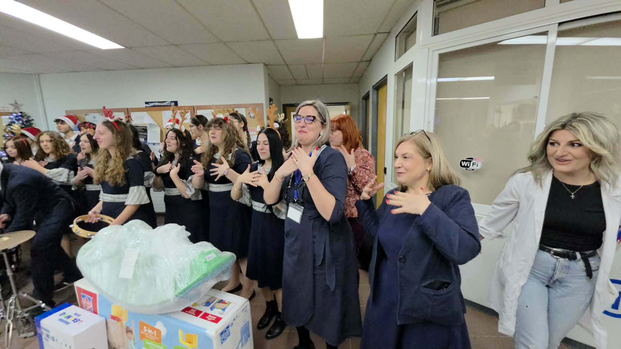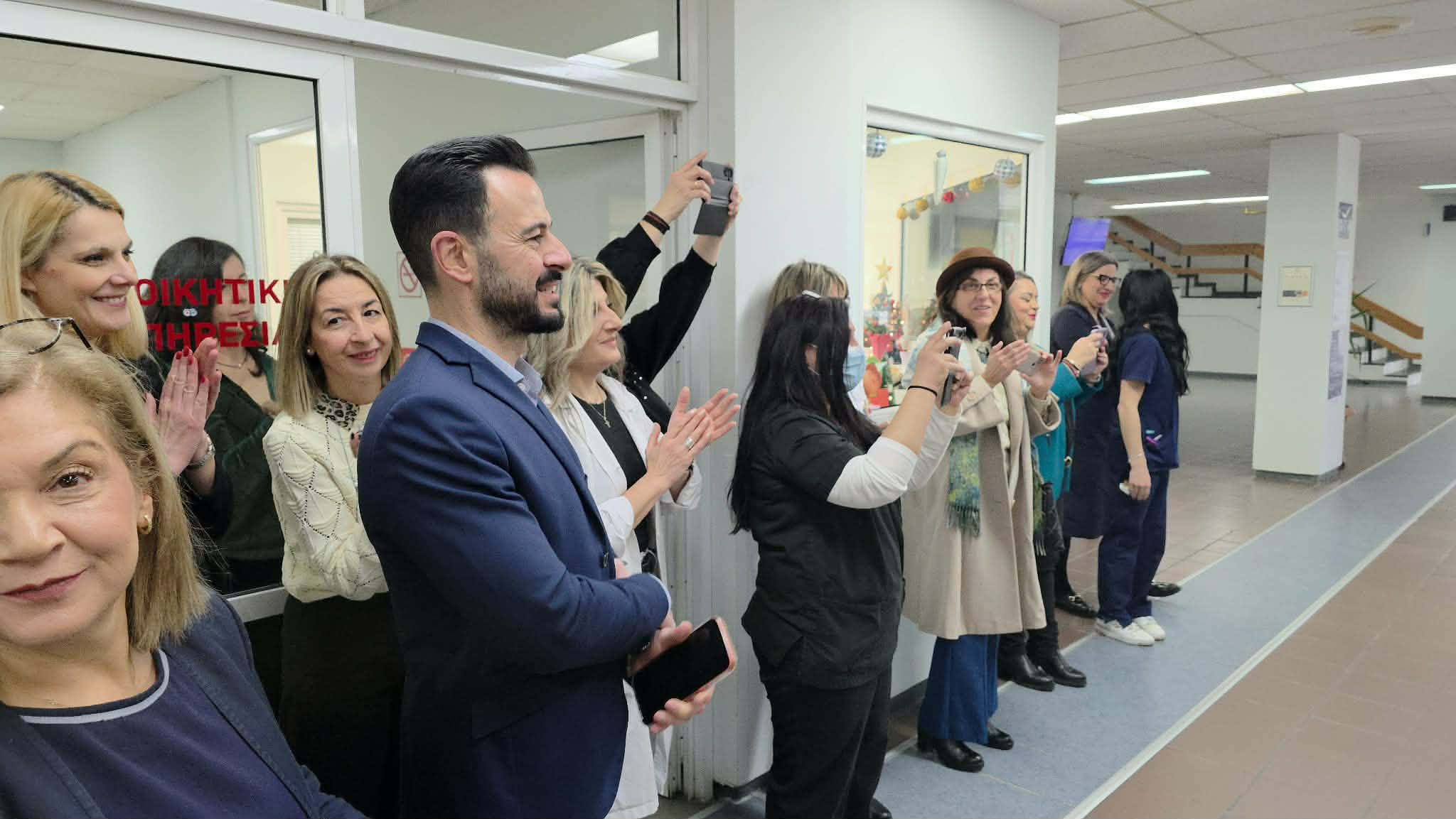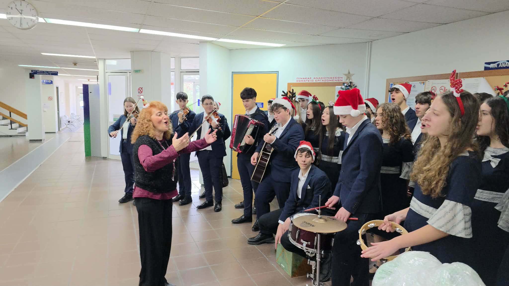 Οι μαθητές, συνοδευόμενοι από τις καθηγήτριές τους Κακαρίκα Πελαγία, Φραγκουλίδου Μένια, Χαντζή Στέλλα και Ιωαννίδου Δέσποινα, ξεκίνησαν την επίσκεψή τους ψάλλοντας τα κάλαντα στον Διοικητή κ. Ιωάννη Κετικίδη και στο διοικητικό προσωπικό του Νοσοκομείου, δημιουργώντας μια ζεστή και εορταστική ατμόσφαιρα.