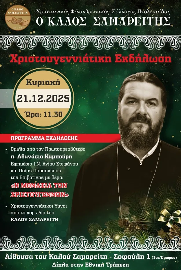 Η Χριστουγεννιάτικη γιορτή του Καλού Σαμαρείτη που θα πραγματοποιηθεί την Κυριακή 21/12/2025 στις 11:30 πμ.