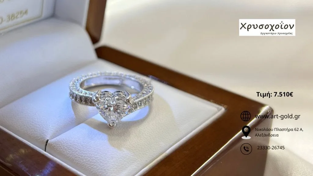 Λευκόχρυσο δαχτυλίδι Κ18, σχεδιασμένο για να αιχμαλωτίζει το βλέμμα και να συγκινεί την καρδιά.