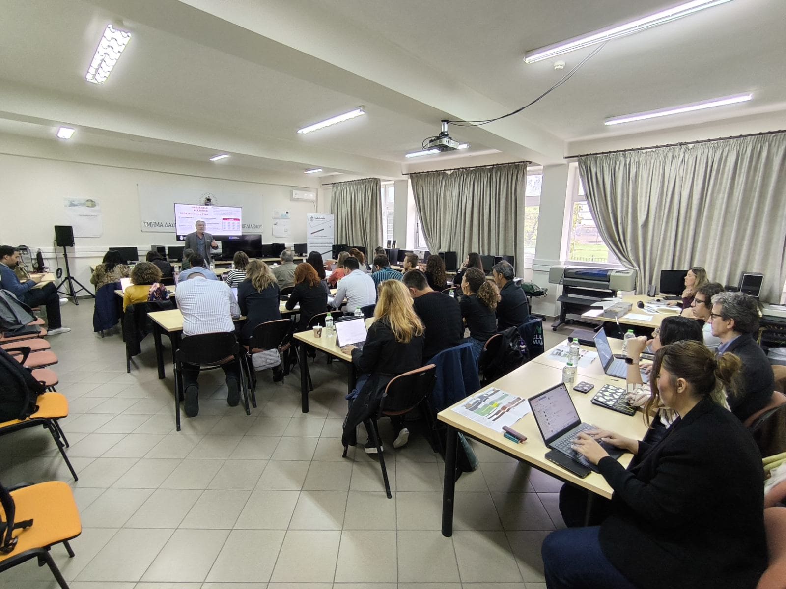 Αρχικά, ο Δρ. Κωνσταντίνος Νινίκας, Ερευνητής που στελεχώνει το διδακτικό προσωπικό του Πανεπιστημίου Θεσσαλίας, ανέλυσε το τοπίο της επαγγελματικής εκπαίδευσης και κατάρτισης στην Ελλάδα και παρουσίασε το έργο του Πανεπιστημίου Θεσσαλίας στη σύνδεση εκπαίδευσης και αγοράς εργασίας στον τομέα του ξύλου και του σχεδιασμού.