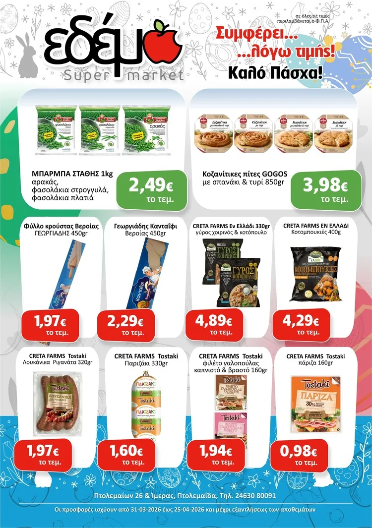 Δείτε το νέο φυλλάδιο προσφορών του super market ΕΔΕΜ στην Πτολεμαΐδα και … Καλή Ανάσταση & Καλό Πάσχα!