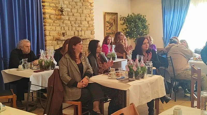 Η εκδήλωση ολοκληρώθηκε με μια συμβολική κίνηση, καθώς μοιράστηκαν μικρά γλαστράκια σε όλες τις γυναίκες, το καθένα με λέξεις όπως “σεβασμός”, “αλληλεγγύη” και “δύναμη”, υπενθυμίζοντας ότι οι αξίες αυτές χρειάζεται να καλλιεργούνται καθημερινά.