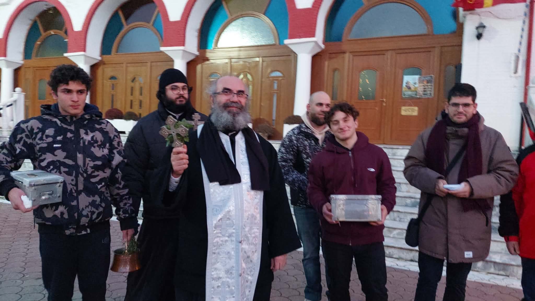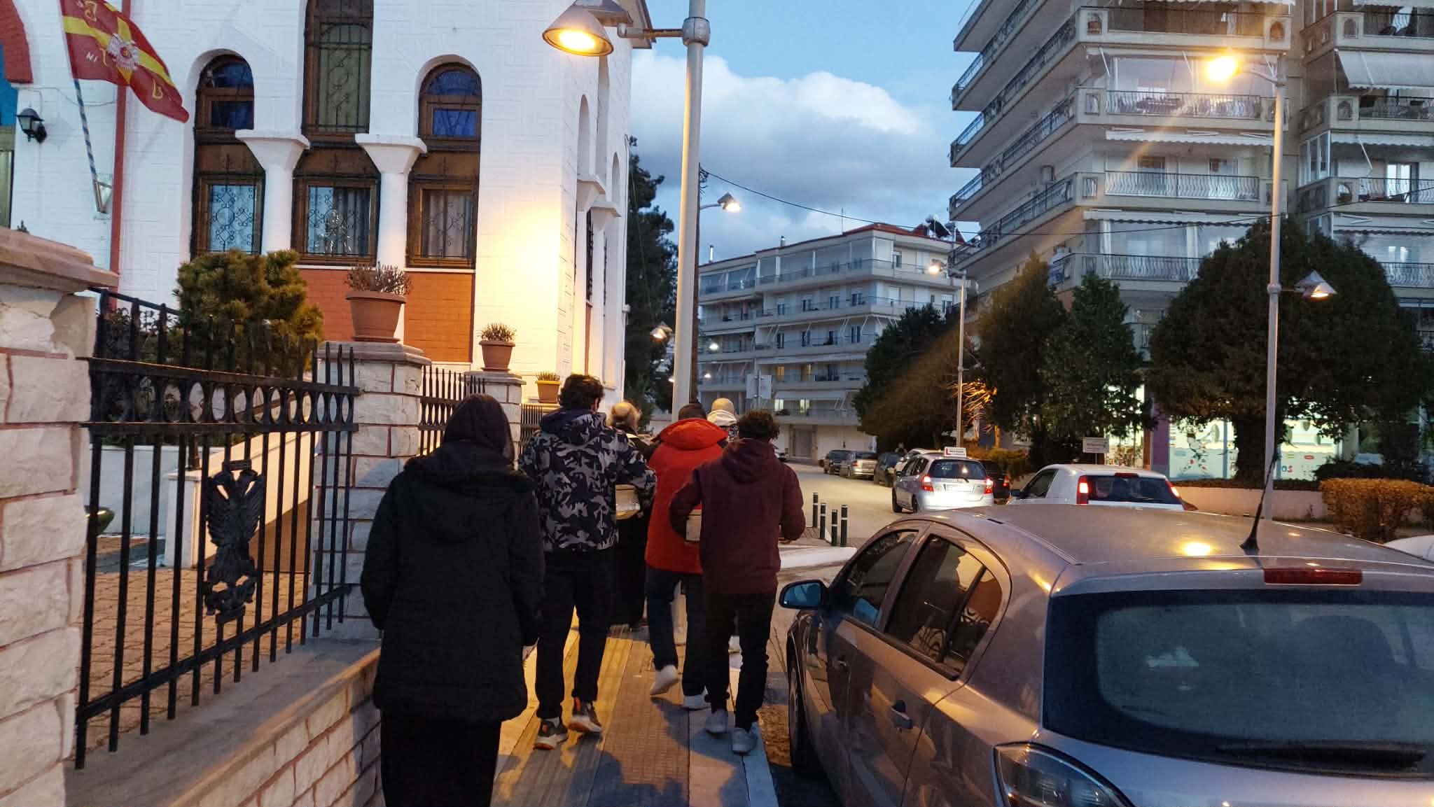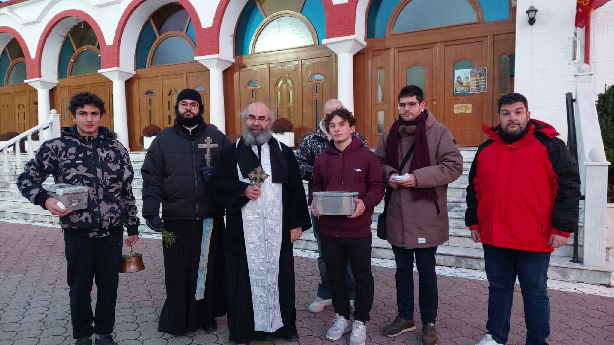 Η κάμερα του e-ptolemeos συνάντησε την ομάδα με επικεφαλής τον Πρωτοπρεσβύτερο του Ιερού Ναού Αγίας Σκέπης Πτολεμαΐδας Πατέρα Θεόφιλο Φραγκουλίδη, συνοδευόμενο από τον Πατέρα Λουκά και νέους της Εκκλησίας, λίγο πριν ξεκινήσουν τον αγιασμό σπιτιών των Ενοριτών της Εκκλησίας, αψηφώντας τις αντίξοες καιρικές συνθήκες.