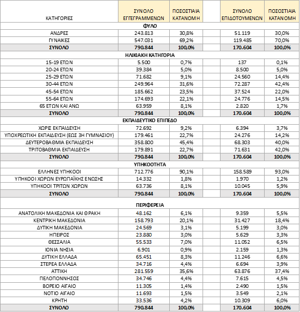 Σε πανελλαδικό επίπεδο, η ΔΥΠΑ κατέγραψε πτώση της εγγεγραμμένης ανεργίας για τρεις συνεχόμενους μήνες:
