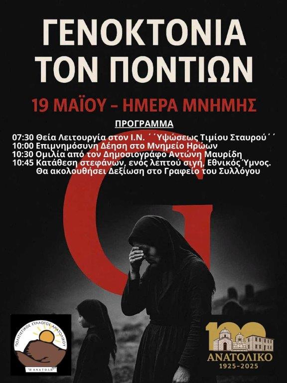 Με σεβασμό και συγκίνηση η Τοπική Κοινότητα Ανατολικού Εορδαίας τιμά την Ημέρα Μνήμης της Γενοκτονίας των Ποντίων, 19 Μαΐου, αποτίοντας φόρο τιμής στα θύματα του Ποντιακού Ελληνισμού.