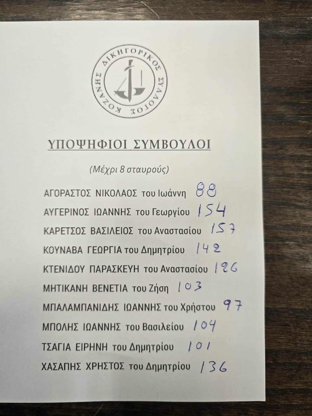 Σε θετικό κλίμα πραγματοποιήθηκαν οι εκλογές του Δικηγορικού Συλλόγου Κοζάνης, με την ανάδειξη των οκτώ πρώτων υποψηφίων που θα συγκροτήσουν το νέο Διοικητικό Συμβούλιο. Παράλληλα, σε ξεχωριστή κάλπη, τα μέλη του Συλλόγου εξέλεξαν νέο πρόεδρο τον Αχιλλέα Καγιόγλου.