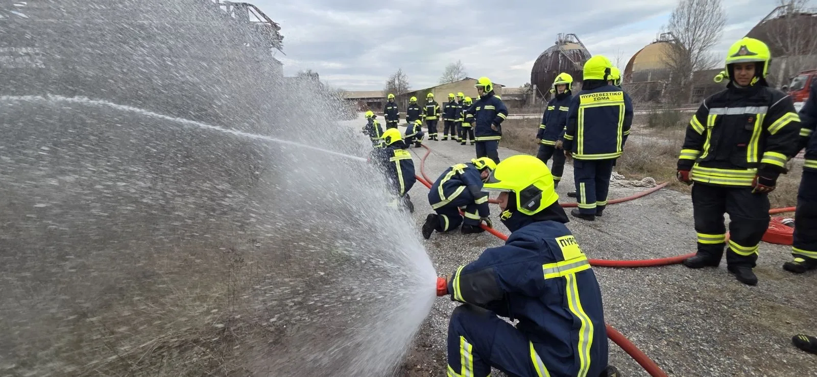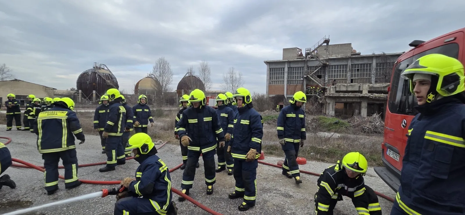 Την Πέμπτη 5 Μαρτίου 2026, στο πλαίσιο του Μαθήματος “Πυροσβεστική Τέχνη ΙΙ”, δόκιμοι πυροσβέστες της 93ης Ε.Σ. εκπαιδεύτηκαν στην ανάπτυξη και προώθηση εγκαταστάσεων πυρόσβεσης καθώς επίσης και στις τεχνικές χειρισμού αυλών ύδατος σε πολυώροφα κτήρια και διαμερισματοποιημένους χώρους με χρήση διαφόρων τεχνικών και δεξιοτήτων. Την εκπαίδευση πραγματοποίησαν πυροσβέστες της 2ης Ε.Μ.Α.Κ. στις εγκαταστάσεις της πρώην βιομηχανίας ΑΕΒΑΛ, κατόπιν αιτήματος της Διοίκησης της Σχολής προς τον Δήμαρχο Εορδαίας , με στόχο την εξοικείωση των δοκίμων πυροσβεστών με το σύνθετο περιβάλλον των κτηρίων αυτού του τύπου.