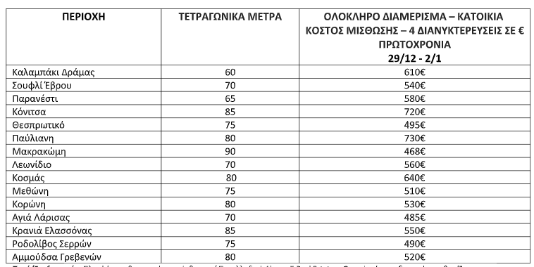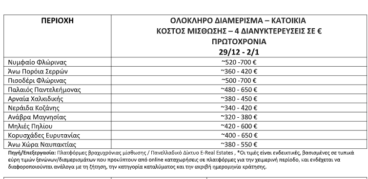 Χωριά όπως το Μεγαλόβρυσο και η Ανατολή προσφέρουν θέα στον Κίσσαβο και ατμόσφαιρα παραδοσιακής Πρωτοχρονιάς. Οι τιμές διαμονής παραμένουν προσιτές, ενώ η διαθεσιμότητα σε μικρούς ξενώνες είναι ικανοποιητική.