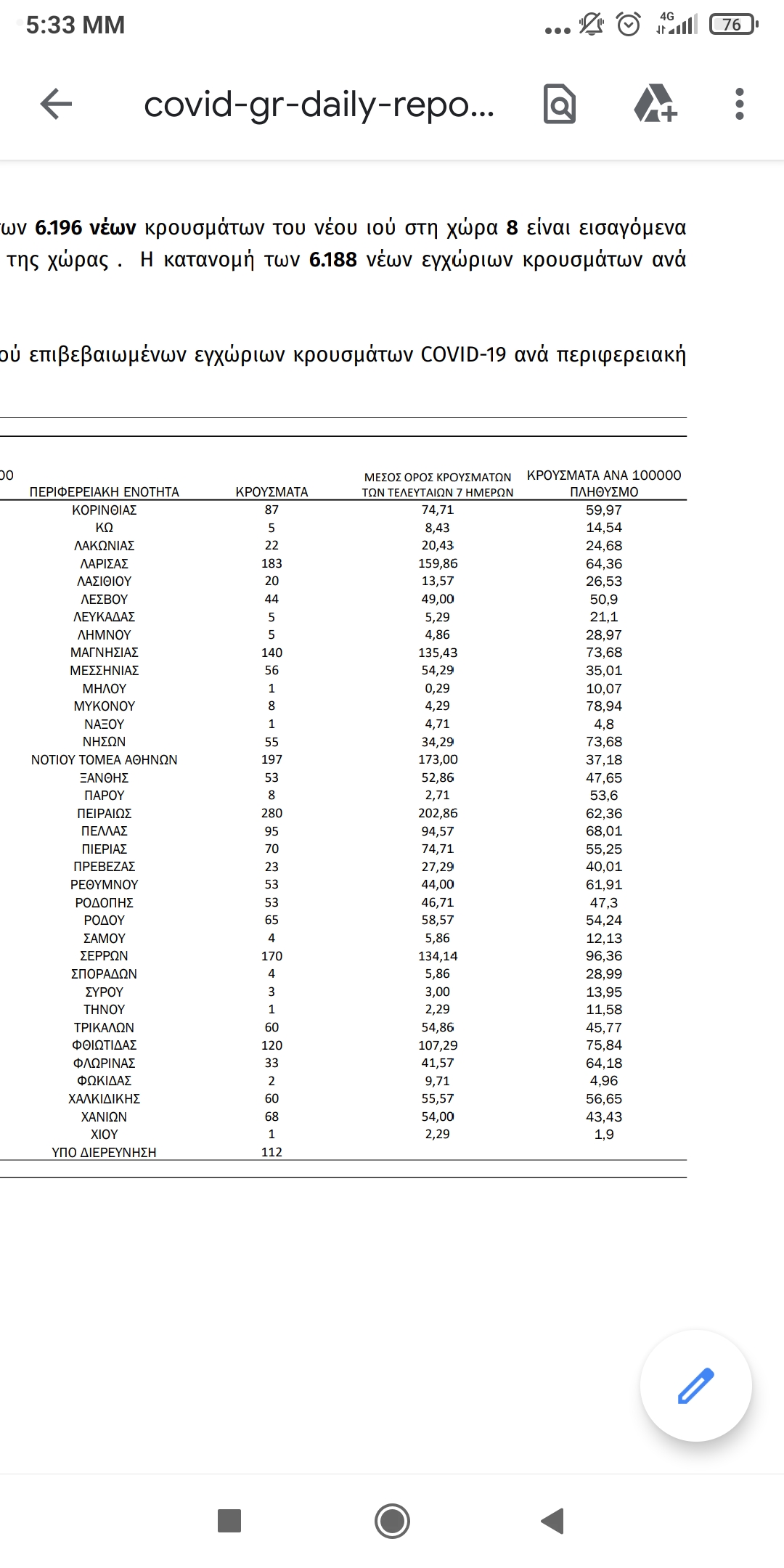 Ανέβηκαν στους 690 οι διασωληνωμένοι, 75 θάνατοι, 6.196 τα νέα κρούσματα