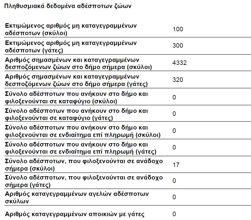 Επίσης, εντοπίστηκαν 10 ζώα σημασμένα και καταγεγραμμένα, που εγκαταλείφτηκαν.