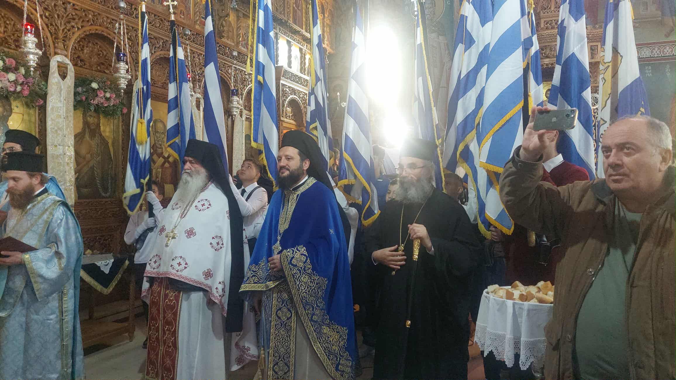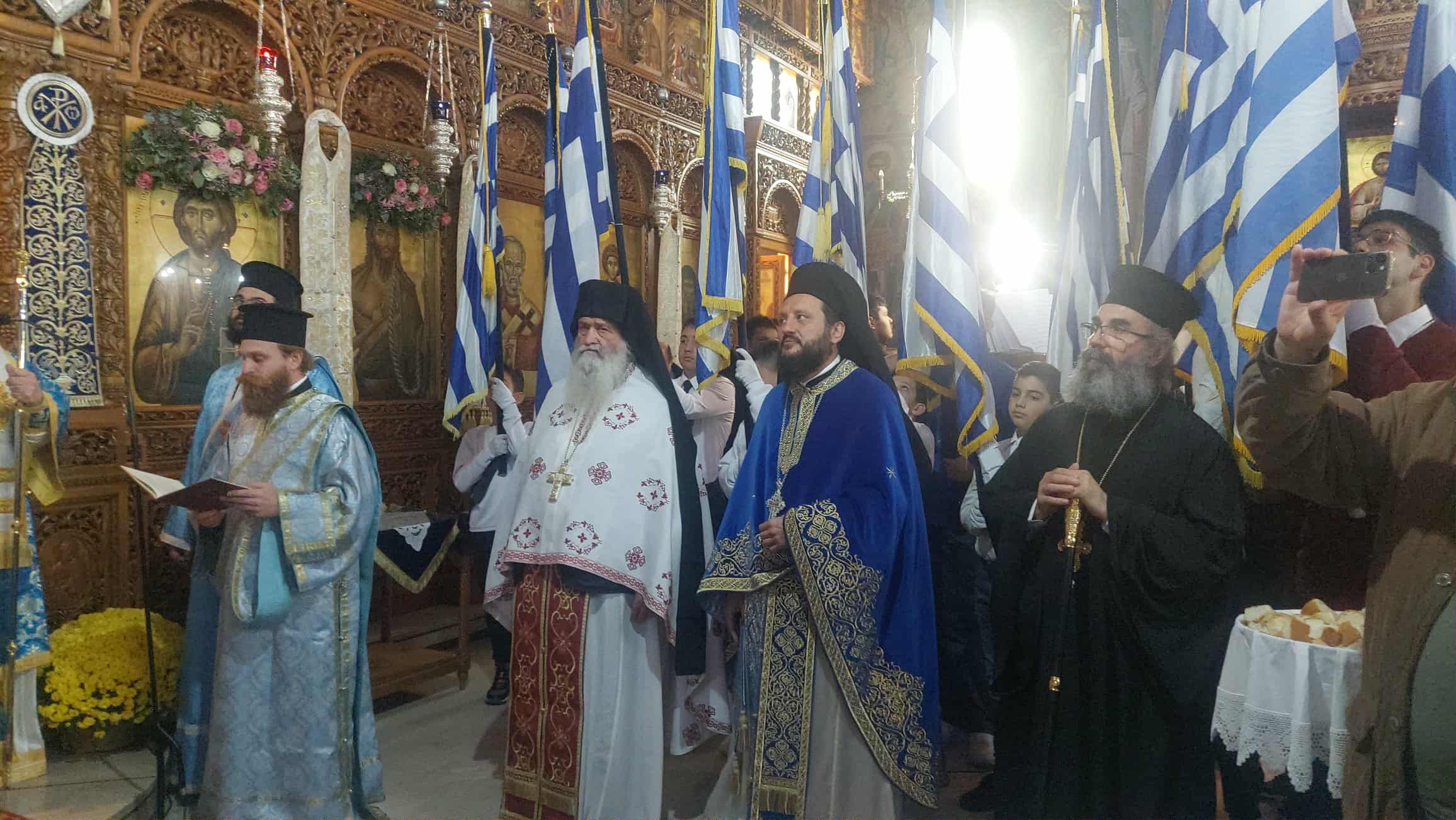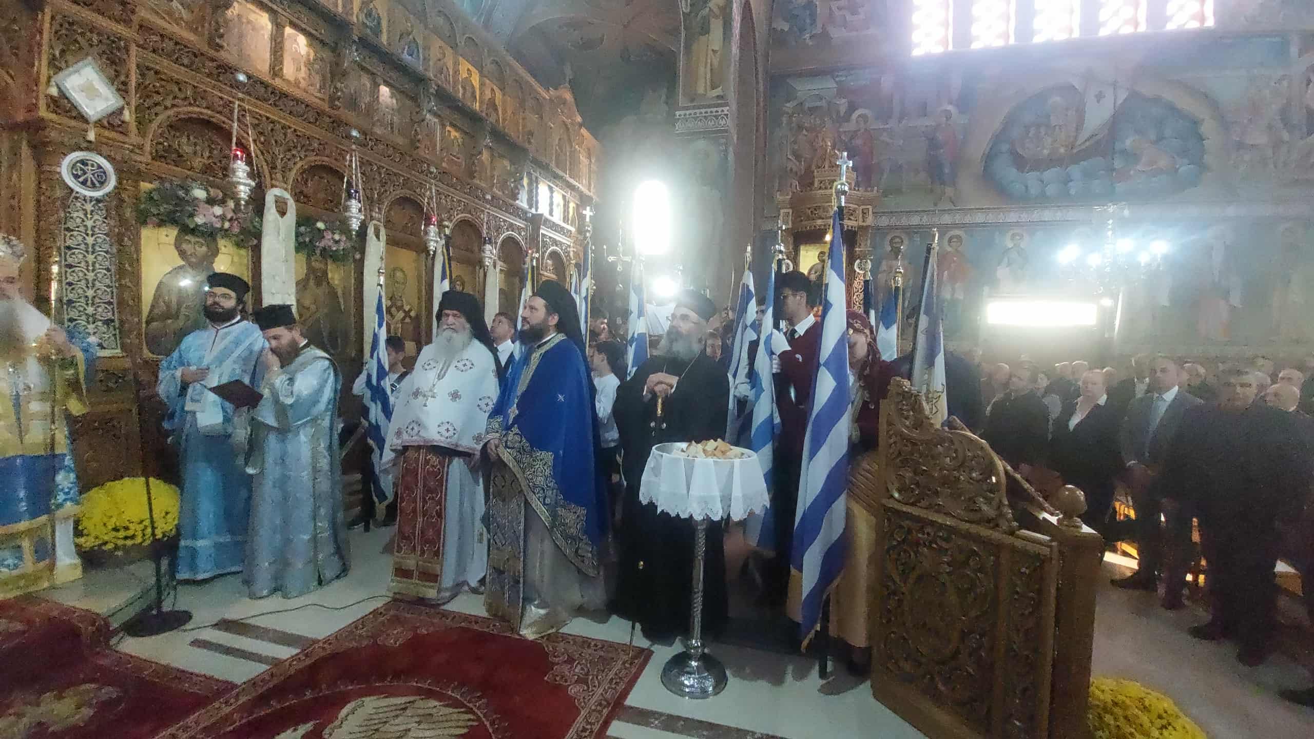 Χοροστατούντων του Θεοφιλεστάτου Επισκόπου Αλμωπίας κ.κ. Στεφάνου και του Σεβασμιωτάτου Μητροπολίτου μας κ.κ. Ειρηναίου, με τη συμμετοχή του Ιερού Κλήρου, εκπροσώπων των τοπικών αρχών και πλήθους πιστών τελούνται στον εορτάζοντα Ι.Ν. Αγίας Σκέπης η Πανηγυρική Αρχιερατική Θεία Λειτουργία και η ΔΟΞΟΛΟΓΙΑ για την Εθνική επέτειο της 28ης Οκτωβρίου .