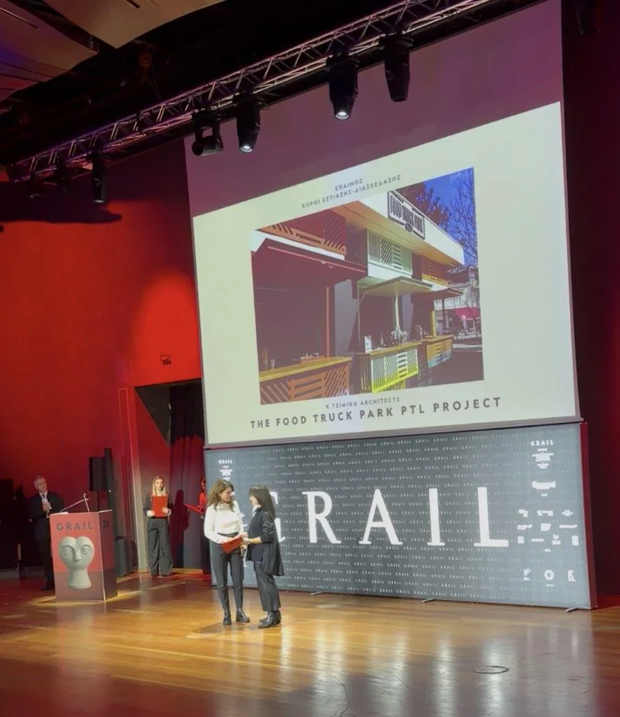 Το αρχιτεκτονικό γραφείο K TZIMIKA ARCHITECTS, με έδρα την Πτολεμαΐδα, απέσπασε Έπαινο στα GRAIL AWARDS 2026 για το έργο “THE FOOD TRUCK PARK PTL PROJECT”, στην Ενότητα Εσωτερικοί Χώροι & Φωτισμός, στην κατηγορία Χώροι Εστίασης – Διασκέδασης.
