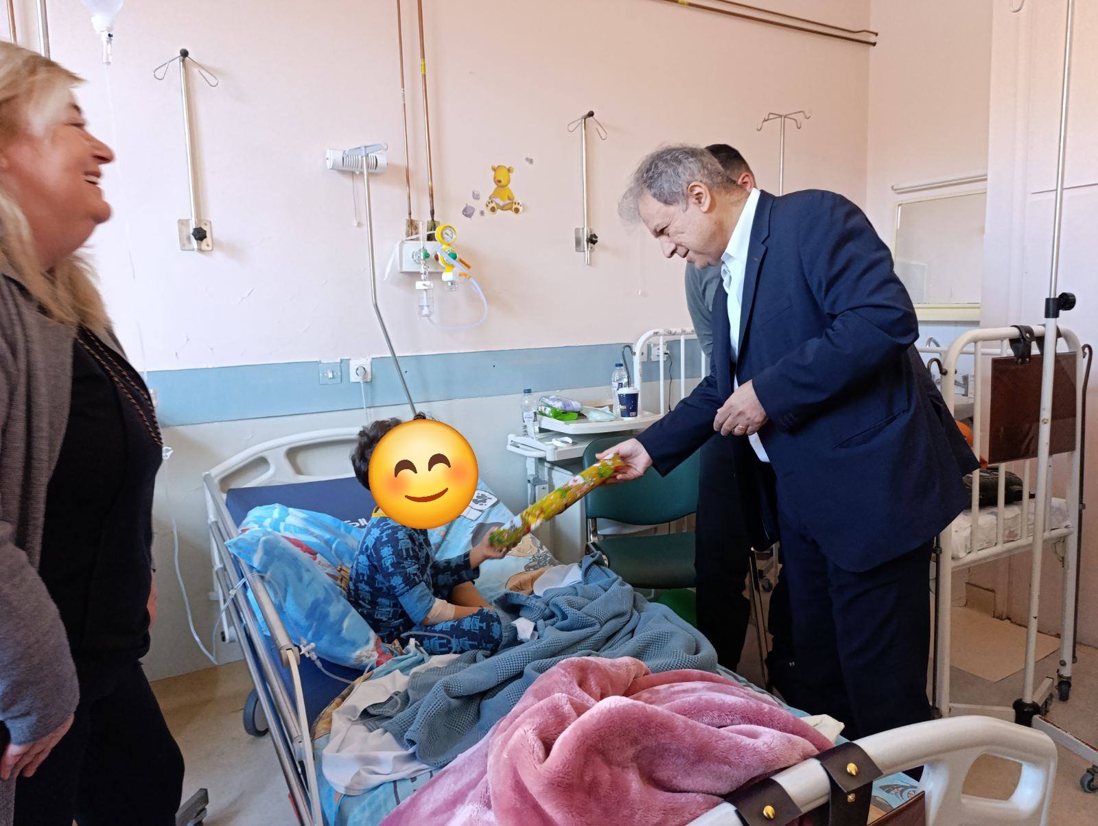 Παράλληλα ο κ. Αμανατίδης επισκέφθηκε τους μικρούς ασθενείς που νοσηλέυονται στην Παιδιατρική κλινική του Μαμάτσειου εκφράζοντας στους ίδιους και στις οικογένειές τους ευχές για γρήγορη ανάρρωση.