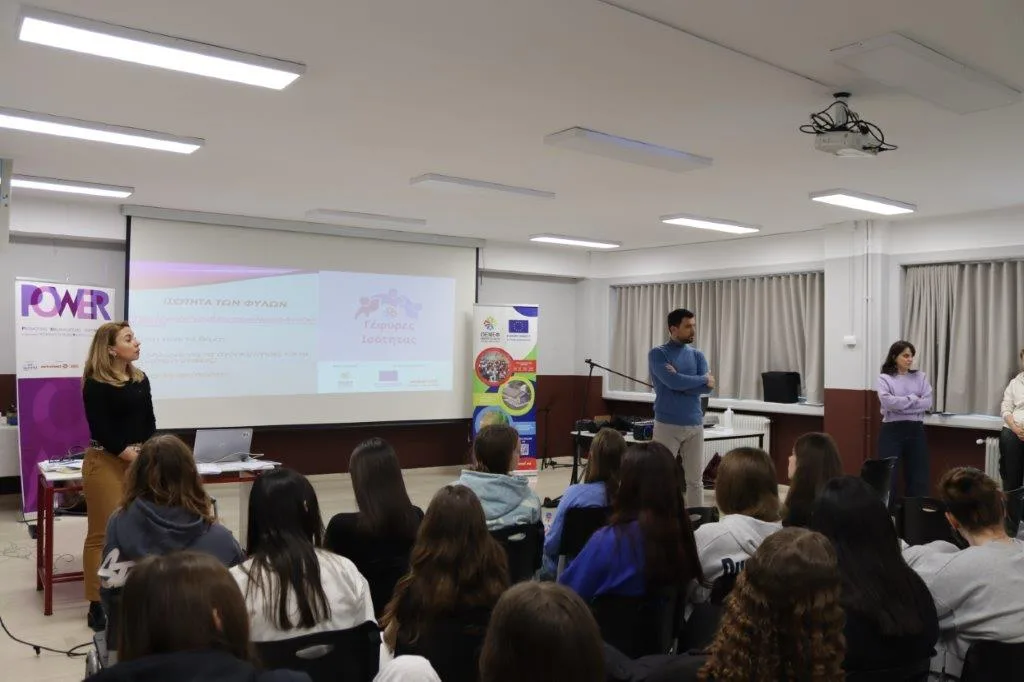Την Παρασκευή 27 Μαρτίου 2026, πραγματοποιήθηκε στο Δημόσιο Ωνάσειο Σχολείο – Ημερήσιο Γενικό Λύκειο Κοζάνης – Σχολείο Πρέσβης του Ευρωπαϊκού Κοινοβουλίου, η ενημερωτική δράση του έργου «Γέφυρες Ισότητας», που υλοποιεί ο ‘Ομιλος Ενεργών Νέων Φλώρινας (ΟΕΝΕΦ) – Europe Direct Δυτικής Μακεδονίας στο πλαίσιο του έργου POWER. Στόχος του έργου είναι η ενίσχυση της ισότητας των φύλων, η αντιμετώπιση των έμφυλων στερεοτύπων και η ευαισθητοποίηση των νέων γύρω από ζητήματα διακρίσεων και έμφυλης βίας.