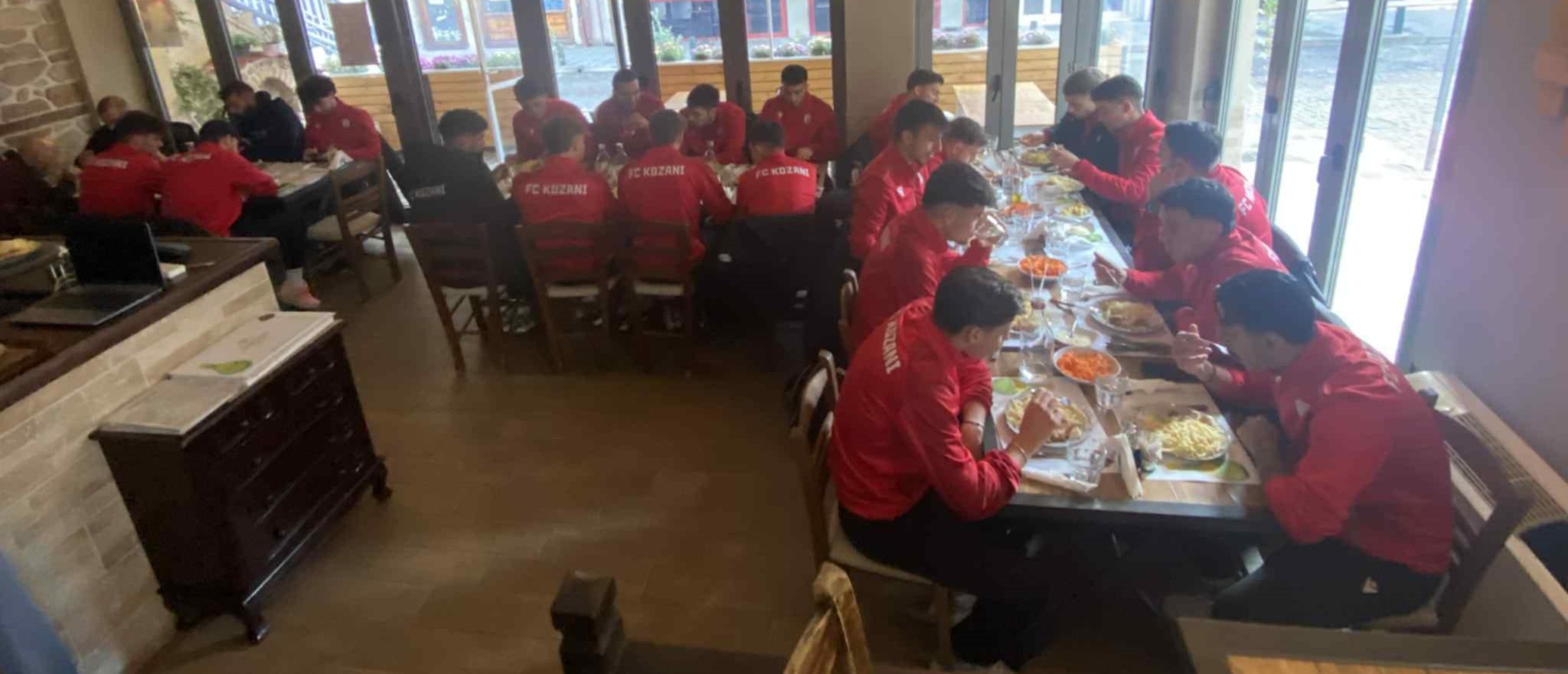 Πριν από την αναχώρηση, οι ποδοσφαιριστές και το τεχνικό επιτελείο γευμάτισαν στο εστιατόριο «Κουρούμπελο», το οποίο προσέφερε το γεύμα στηρίζοντας έμπρακτα την ομάδα. Η Διοίκηση του Φ.Σ. Κοζάνη και ο Σύνδεσμος φιλάθλων «Τα Λιοντάρια» ευχαρίστησαν θερμά την επιχείρηση για τη συμβολή της, τονίζοντας πως η στήριξη των τοπικών επαγγελματιών αποτελεί σημαντικό παράγοντα στην πορεία της ομάδας.