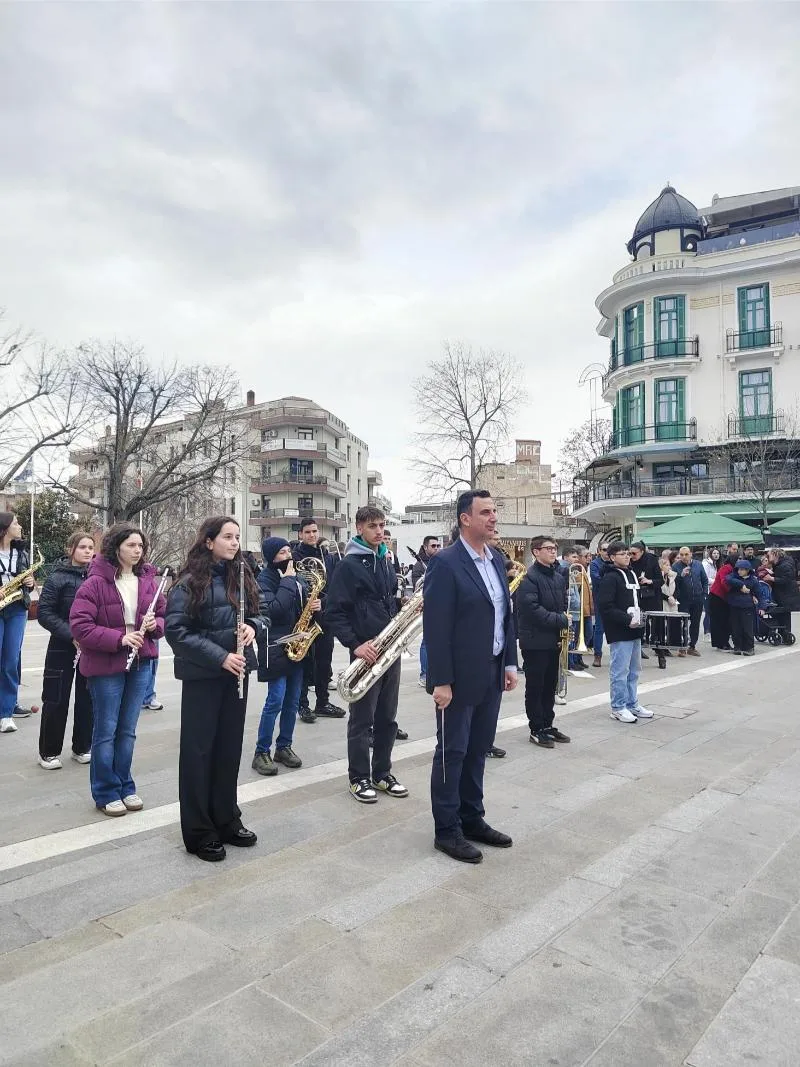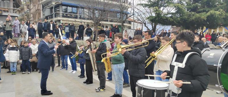 Στη συνέχεια ακολούθησε ενός λεπτού σιγή και ο Εθνικός Ύμνος από την Φιλαρμονική του Δήμου Κοζάνης “Πανδώρα”.
