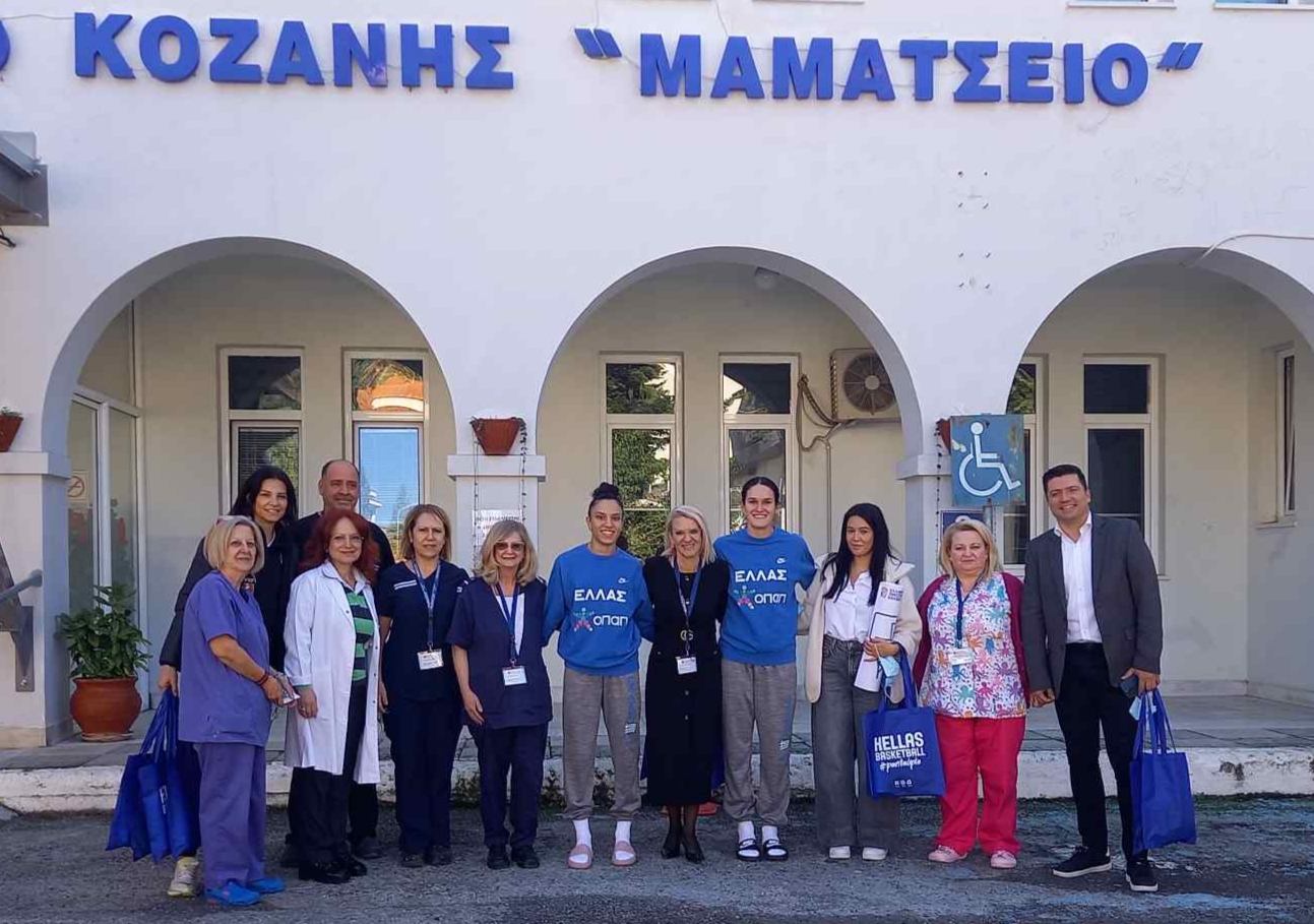 Tην Τετάρτη 12 Νοεμβρίου 2025, η Εθνική Ομάδα Μπάσκετ Γυναικών επισκέφθηκε την Παιδιατρική Κλινική του Γενικού Νοσοκομείου Κοζάνης, ενόψει του αγώνα της με την Εθνική Ομάδα της Κροατίας στο Κλειστό Γυμναστήριο Λευκόβρυσης.