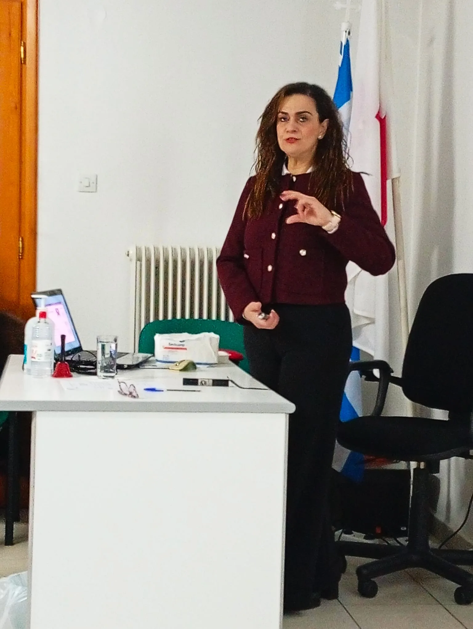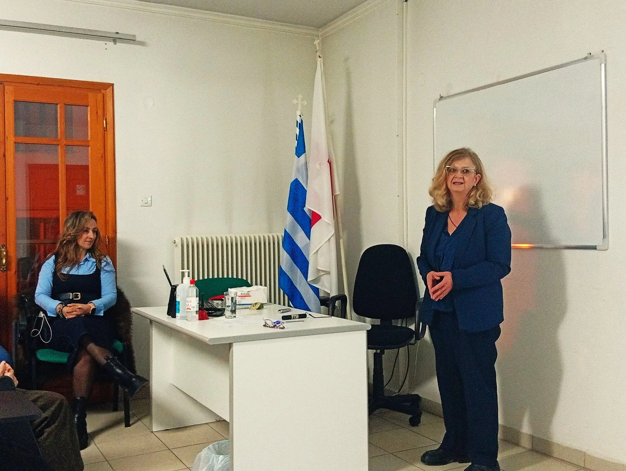 Τη συνάντηση τίμησε με την παρουσία της και απηύθυνε χαιρετισμό και η Διευθύντρια της Νοσηλευτικής Υπηρεσίας του Μαμάτσειου Γ.Ν. Κοζάνης κ. Καλώτα Μαλαματή, η οποία ευχαρίστησε τους εθελοντές/ντριες του Ερυθρού Σταυρού για το σπουδαίο έργο τους και τη συνεχή και διακριτική προσφορά τους τόσο στον χώρο του νοσοκομείου, όσο και στην τοπική κοινωνία και τόνισε ότι οι Εθελοντές και οι Εθελόντριες Υγείας θα είναι πάντα ευπρόσδεκτοι στο νοσοκομείο να προσφέρουν με αυτόν το μοναδικό τρόπο και ήθος τις υπηρεσίες τους.