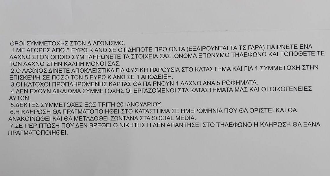 ΟΙ ΟΡΟΙ ΤΟΥ ΔΙΑΓΩΝΙΣΜΟΥ ΑΝΑΓΡΑΦΟΝΤΑΙ ΕΥΚΡΙΝΩΣ ΣΤΟ ΚΑΤΑΣΤΗΜΑ ΚΑΙ ΣΤΙΣ ΦΩΤΟΓΡΑΦΙΕΣ. ΟΣΕΣ ΠΕΡΙΣΣΟΤΕΡΕΣ ΣΥΜΜΕΤΟΧΕΣ ΤΟΣΕΣ.ΠΕΡΙΣΣΟΤΕΡΕΣ ΠΙΘΑΝΟΤΗΤΕΣ ΝΑ ΓΙΝΕΙ ΔΙΚΟ ΣΟΥ.