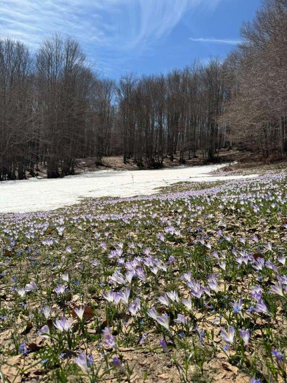 Στις πλαγιές του όρους Βέρνου, ανάμεσα στην Καστοριά και την Φλώρινα, το λιγοστό χιόνι δροσίζει τη γη. Ο ανοιξιάτικος ήλιος λούζει με το φως του, τους ανθισμένους βιολετί κρόκους, που στέριωσαν στο χώμα.