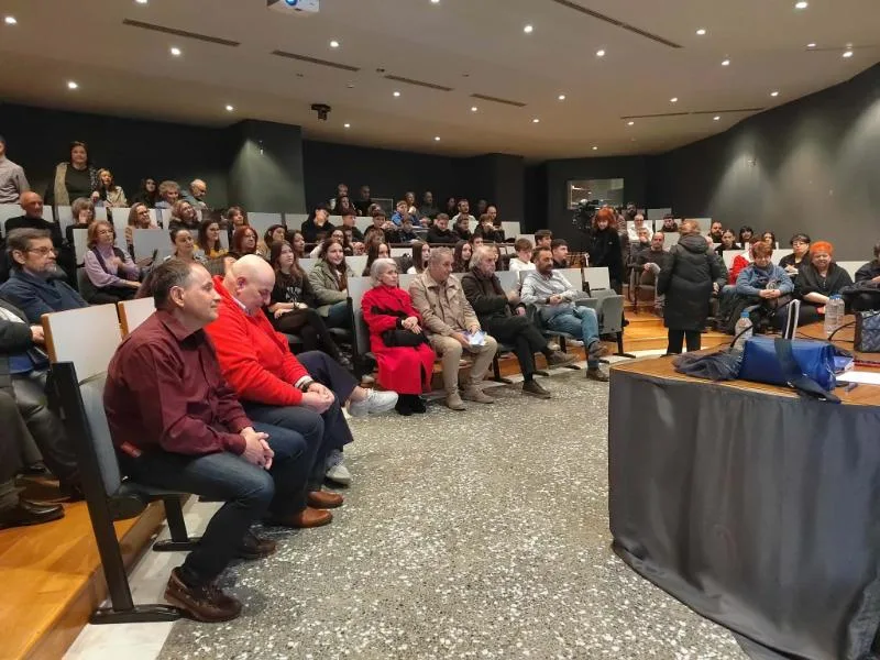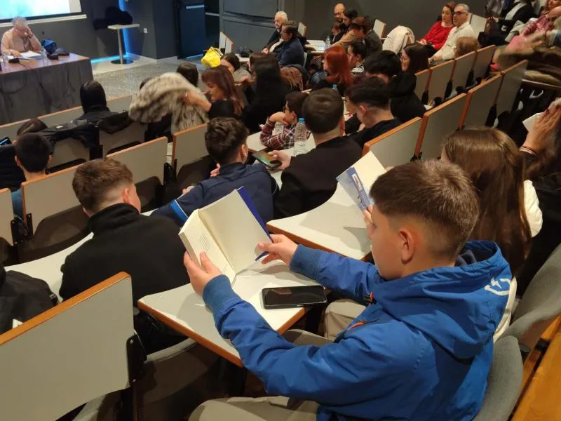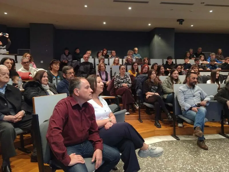 Γέμισε από χαμόγελα, περιέργεια και νεανική ενέργεια το αμφιθέατρο της Κοβενταρείου Δημοτικής Βιβλιοθήκης Κοζάνης, στην παρουσίαση του βιβλίου «Εκτός» της Αναστασίας Ζήγρα-Χατζησυμεώνογλου, το απόγευμα του Σαββάτου 7 Φεβρουαρίου.