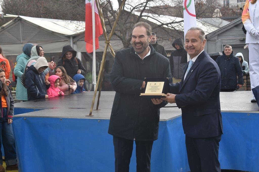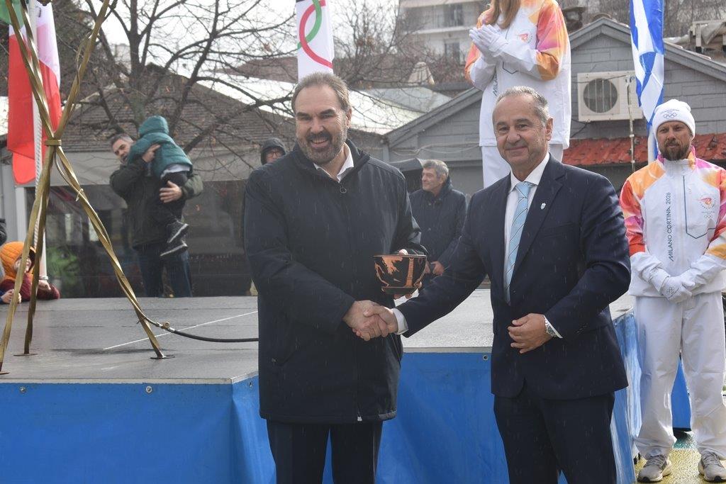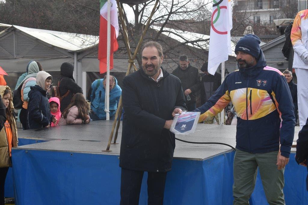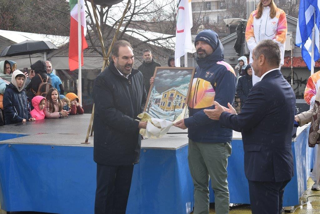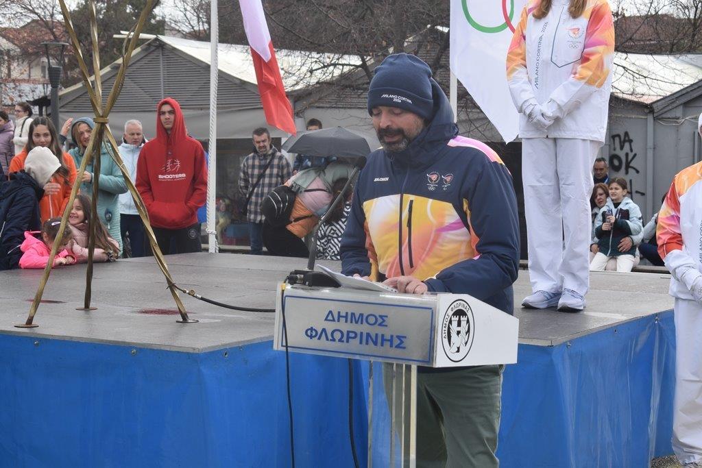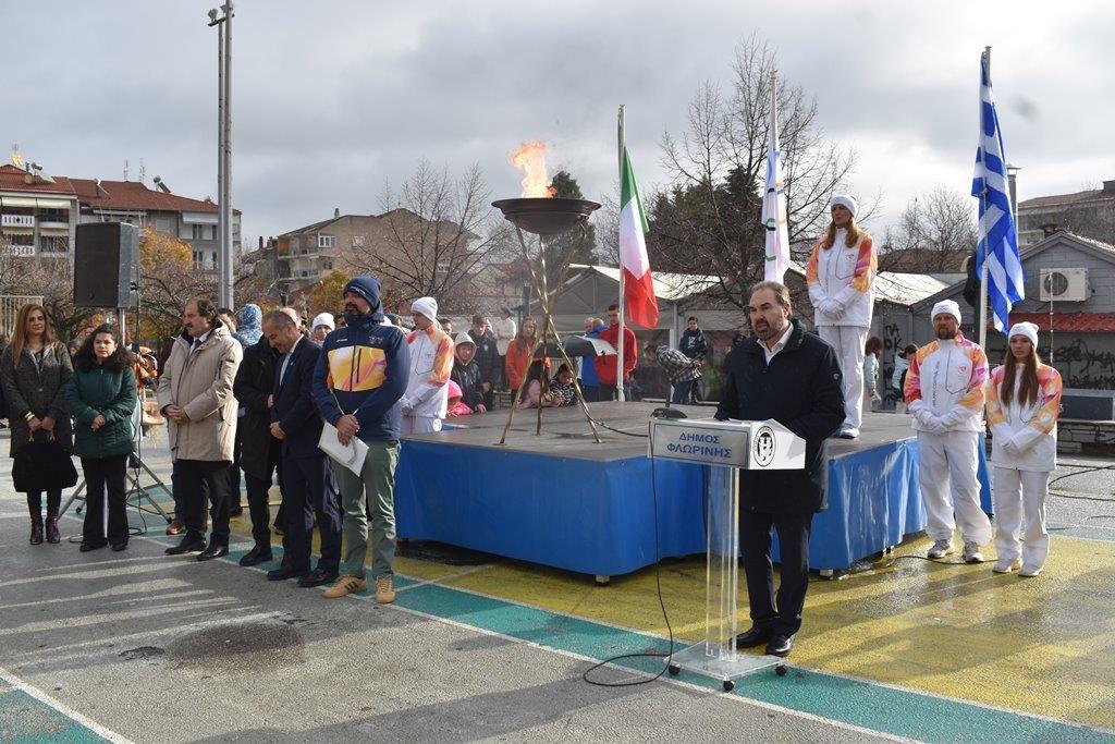 Ο Δήμαρχος Φλώρινας κ. Βασίλης Γιαννάκης υποδέχθηκε εκ μέρους της πόλης τον εκπρόσωπο της πόλης τον εκπρόσωπο της Οργανωτικής Επιτροπής των Χειμερινών Ολυμπιακών Αγώνων κ. Αλέσσιο Μπογκιάτο, τον εκπρόσωπο της Ελληνικής Ολυμπιακής Επιτροπής κ. Θωμά Τόκα, εκπροσώπους των αρχών και των φορέων της Φλώρινας, δεκάδες αθλητές και πολίτες που προσήλθαν για να τιμήσουν το παγκόσμιο και διαχρονικό σύμβολο του Ολυμπισμού.