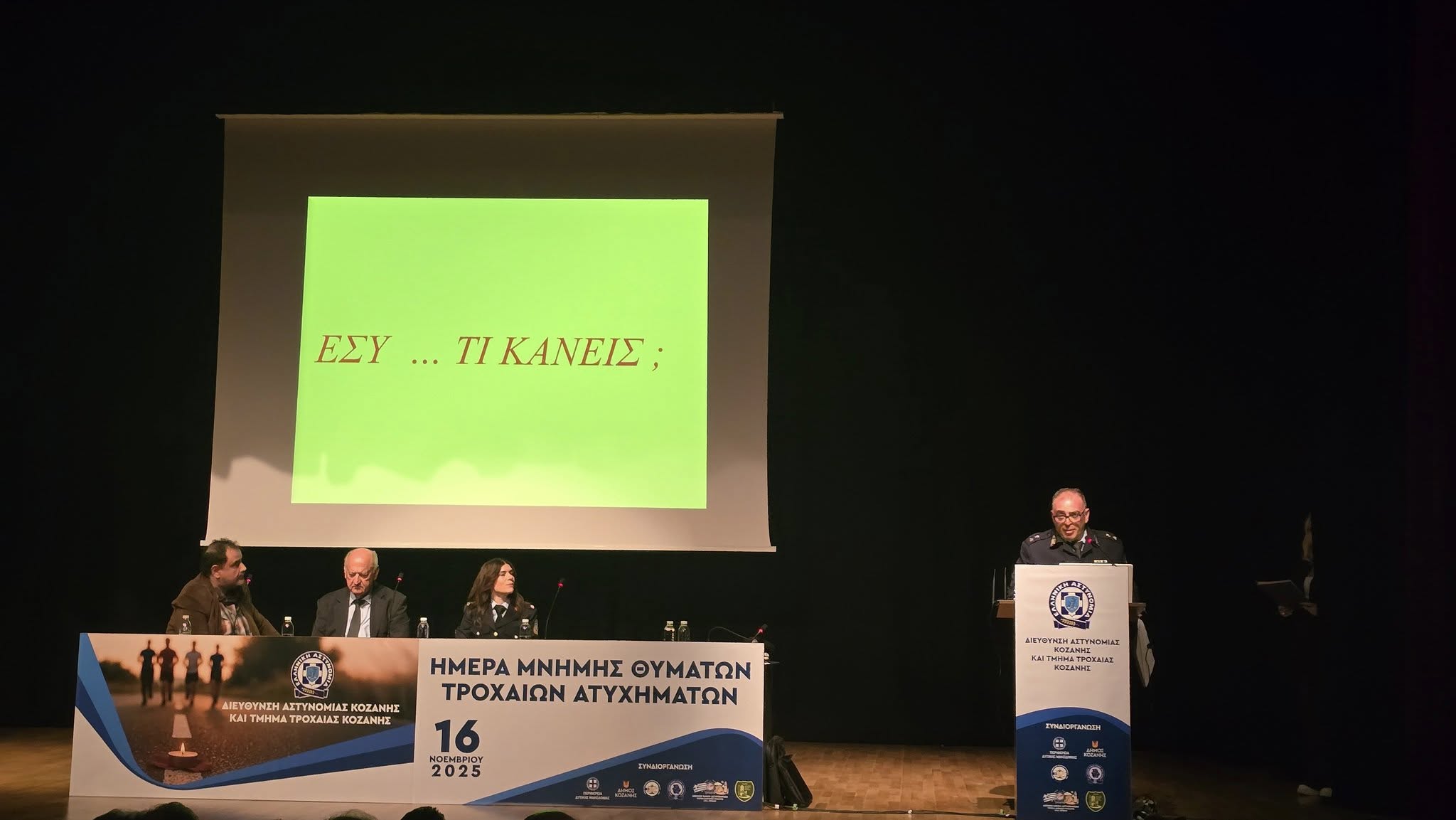 Η Παγκόσμια Ημέρα Μνήμης Θυμάτων Τροχαίων Ατυχημάτων τιμήθηκε στην Κοζάνη με εκδηλώσεις που διοργάνωσαν η Διεύθυνση Αστυνομίας Κοζάνης και το Τμήμα Τροχαίας, στο πλαίσιο της καμπάνιας «Δρόμοι Ασφαλείς για Όλους». Στόχος ήταν να αναδειχθεί η σημασία της πρόληψης και της υπεύθυνης οδήγησης, αλλά και να αποδοθεί τιμή στα θύματα των τροχαίων.