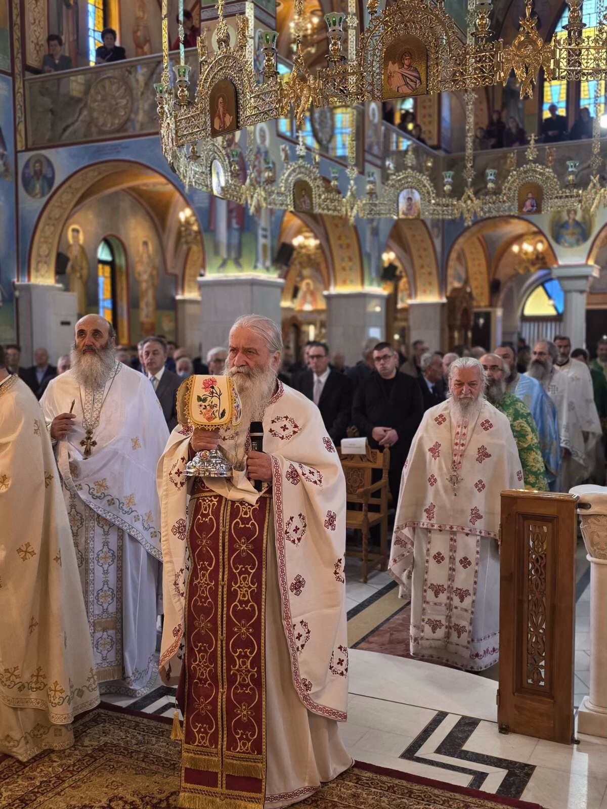 Πριν από την τέλεση της Δοξολογίας, ο Σεβασμιώτατος Μητροπολίτης Φλωρίνης, Πρεσπών και Εορδαίας κ. Ειρηναίος εξέφρασε λόγους ευχαριστίας προς τους αγίους Αρχιερείς για την παρουσία και τη συμμετοχή τους στη χαρά της τοπικής Εκκλησίας, καθώς και τον εκπρόσωπο της Κυβέρνησης και τους λοιπούς εκπροσώπους των πολιτικών και στρατιωτικών αρχών και των Σωμάτων Ασφαλείας. Ευχαρίστησε θερμά τους ιερείς και τον ευλογημένο λαό του Θεού για την πίστη, τη συμμετοχή και την αγάπη τους, που καθιστούν κάθε εκκλησιαστική πανήγυρη πνευματικό γεγονός ζωής και ευλογίας. Τέλος ευχαρίστησε τον Πρόεδρο του Εκκλησιαστικού Συμβουλίου του Ιερού Ναού, πατέρα Τιμόθεο Τσισμαλίδη, για την άρτια προετοιμασία της πανηγύρεως.