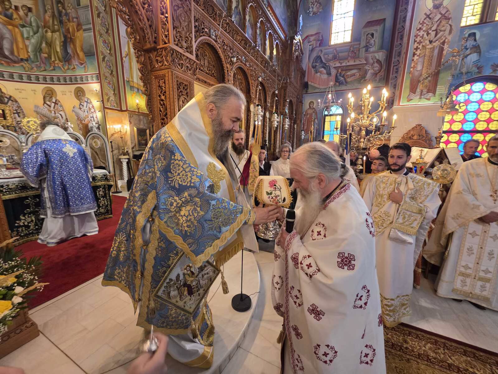 Κατά την ώρα του Κοινωνικού, μίλησε ο Σεβασμιώτατος Μητροπολίτης Λευκάδος και Ιθάκης κ. Θεόφιλος, ο οποίος επεσήμανε τη σημασία της μεγάλης επετείου της Απελευθέρωσης της Πτολεμαΐδας, αλλά και της μνήμης της Οσίας Παρασκευής της Επιβατινής, που συνεορτάζονται την ίδια ημέρα. Ο Σεβασμιώτατος τόνισε ότι η σύμπτωση των δύο εορτών αποτελεί ευλογία του Θεού για την περιοχή, αφού συνδέει την ιστορική ελευθερία με την πνευματική αναγέννηση. Υπογράμμισε ότι η ελευθερία του ανθρώπου και του Έθνους θεμελιώνεται στην πίστη, την αυτοθυσία και την ενότητα και ότι οι ευσεβείς αγώνες του παρελθόντος αποτελούν παράδειγμα για τις σύγχρονες γενιές. Αναφέρθηκε επίσης στην αδελφοποίηση των Δήμων Εορδαίας και Ιθάκης, την οποία χαρακτήρισε πράξη ενότητας και αγάπης, υπό τη σκέπη και την ευχή της Εκκλησίας ενώ επεσήμανε ότι τέτοιες αδελφοποιήσεις δεν έχουν μόνο κοινωνικό χαρακτήρα αλλά αποτελούν μαρτυρία πνευματικής συγγένειας και κοινής πορείας πίστεως. Κλείνοντας, ευχαρίστησε τον Σεβασμιώτατο Μητροπολίτη Φλωρίνης, Πρεσπών και Εορδαίας κ. Ειρηναίο για την ευλογία και τη δυνατότητα να παραστεί στην εορτάζουσα Πτολεμαΐδα, εκφράζοντας τη συγκίνησή του για τη φιλάδελφη φιλοξενία και τη χαρά της πνευματικής κοινωνίας.