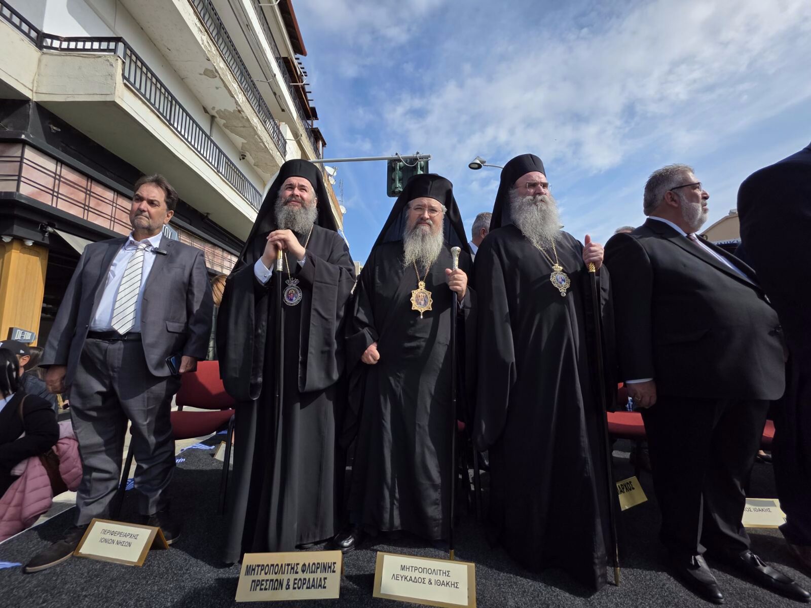 Στην πανηγυρική Θεία Λειτουργία και τη Δοξολογία παρέστη ο Γενικός Γραμματέας Δημόσιας Περιουσίας κ. Αθανάσιος Τσιούρας, εκπροσωπώντας την Ελληνική Κυβέρνηση. Παρόντες επίσης ήταν οι Βουλευτές Π.Ε. Κοζάνης κ. Μιχάλης Παπαδόπουλος και κ. Ευστάθιος Κωνσταντινίδης, ο Δήμαρχος Εορδαίας κ. Παναγιώτης Πλακεντάς, η πρώην Βουλευτής Π.Ε. Κοζάνης κα. Παρασκευή Βρυζίδου, καθώς και αντιπροσωπείες των αδελφοποιημένων Δήμων Ιθάκης και Έγκωμης Κύπρου. Παρέστησαν ακόμη εκπρόσωποι της Περιφέρειας Δυτικής Μακεδονίας, των Ενόπλων Δυνάμεων και των Σωμάτων Ασφαλείας, ενώ η παρουσία του λαού της Εορδαίας υπήρξε συγκινητική.