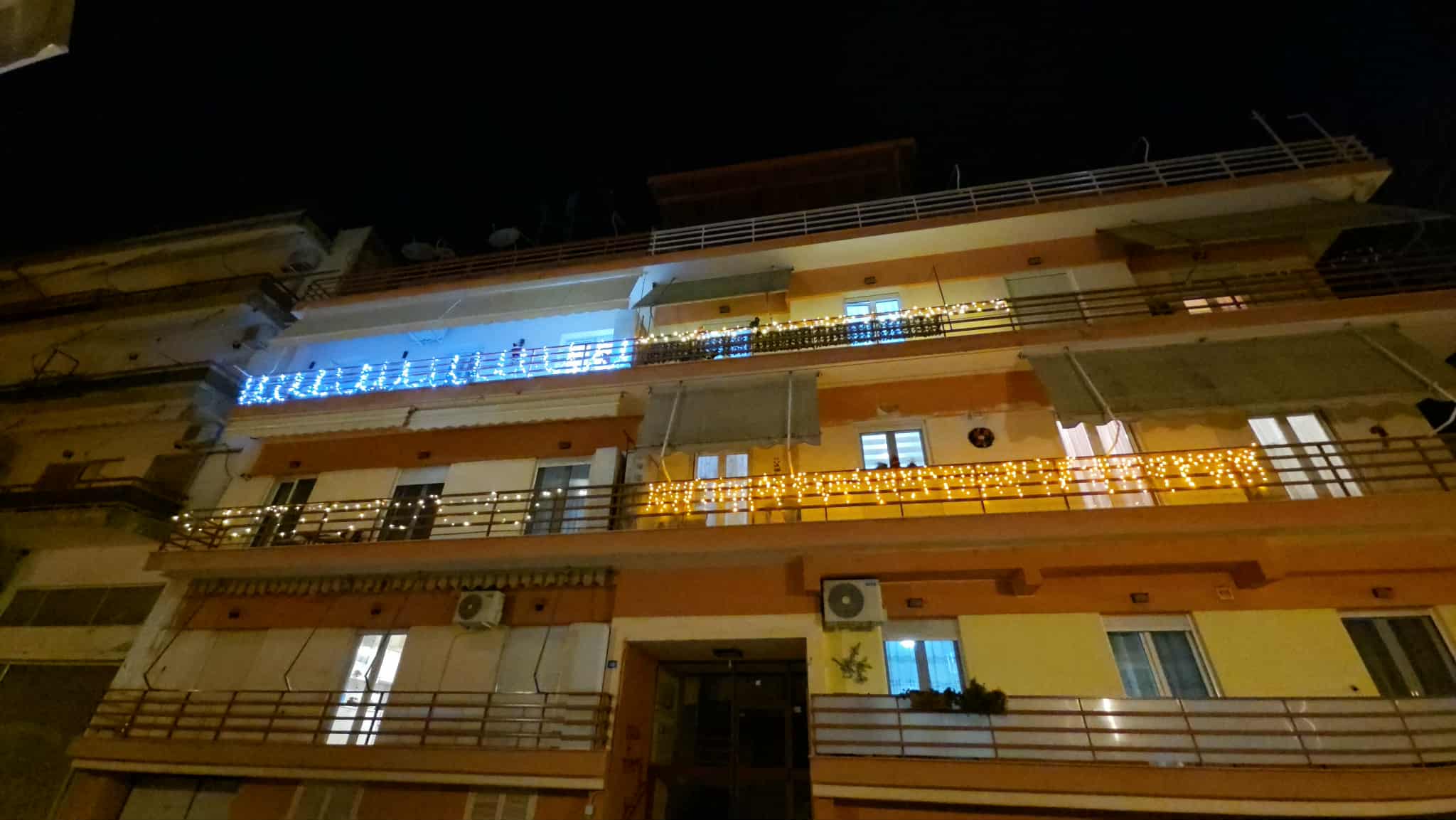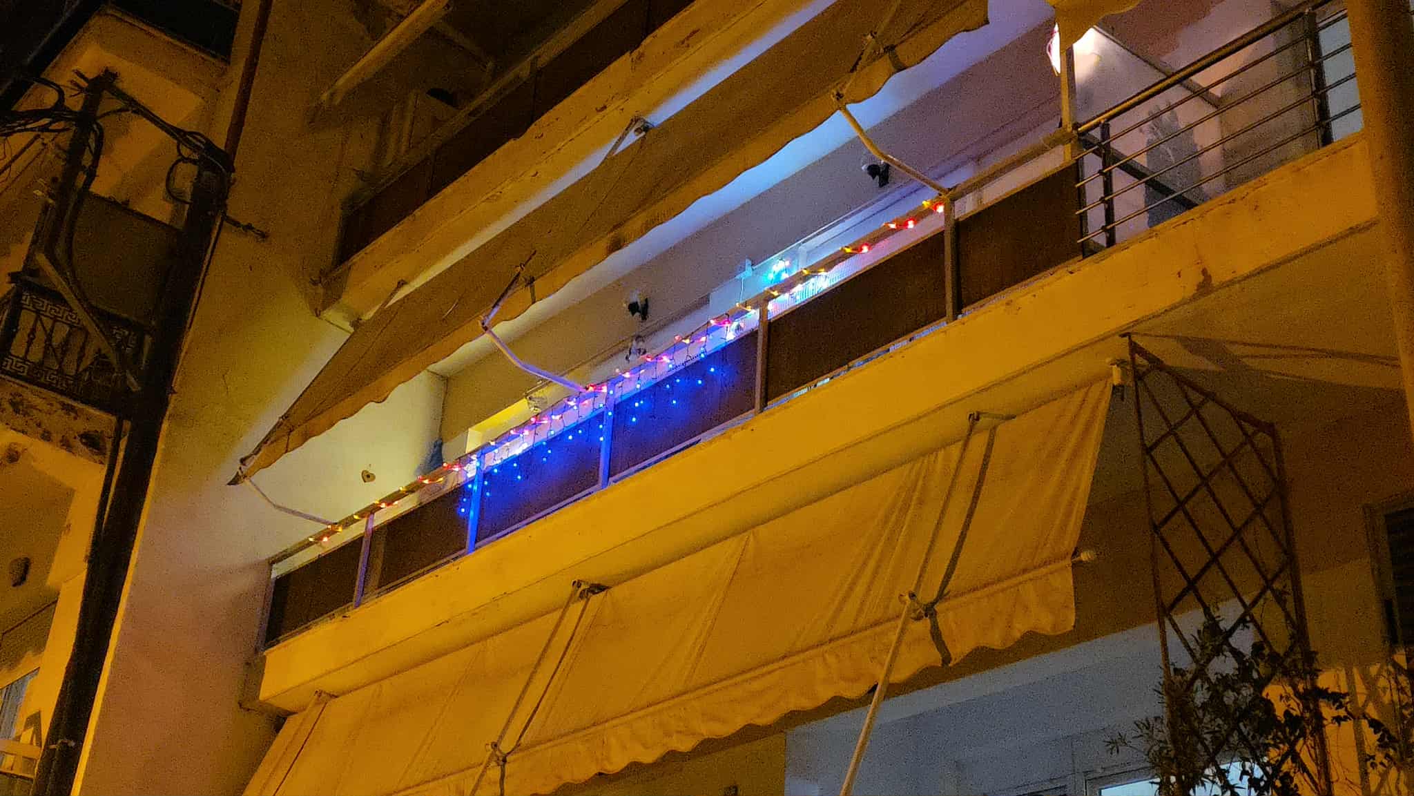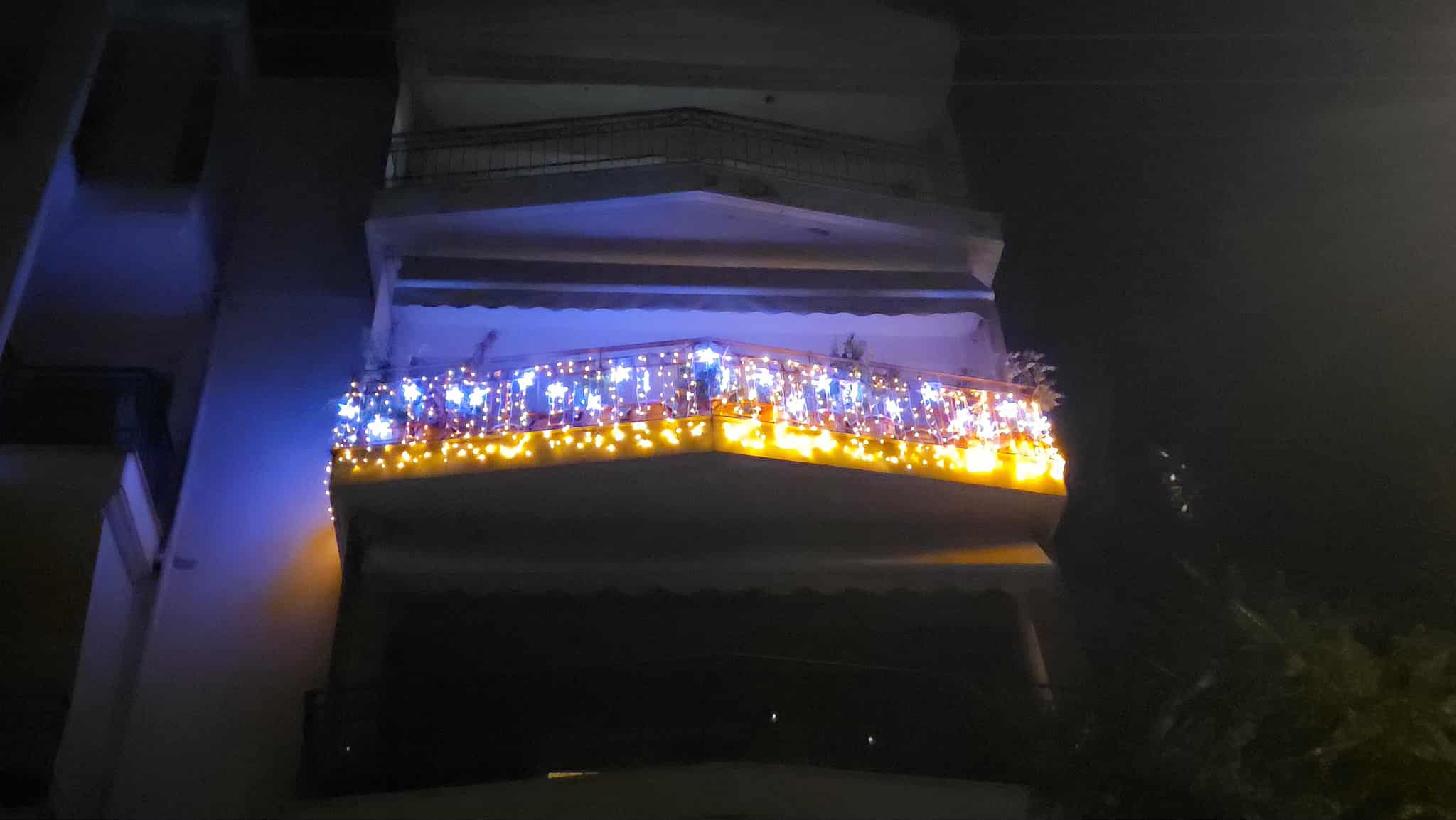 Παρά ταύτα, όσοι στόλισαν τα μπαλκόνια τους πρόσφεραν γιορτινή λάμψη και αισιοδοξία, θυμίζοντας πως ακόμη και λίγα φωτάκια αρκούν για να αλλάξουν την ατμόσφαιρα μιας ολόκληρης γειτονιάς.