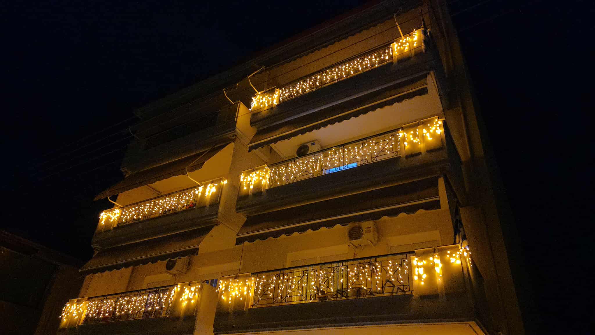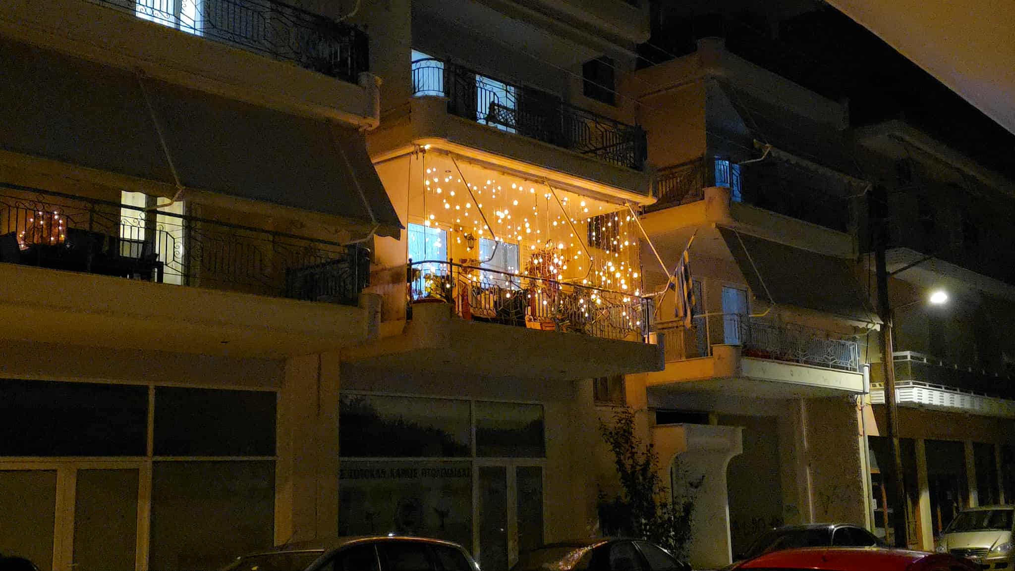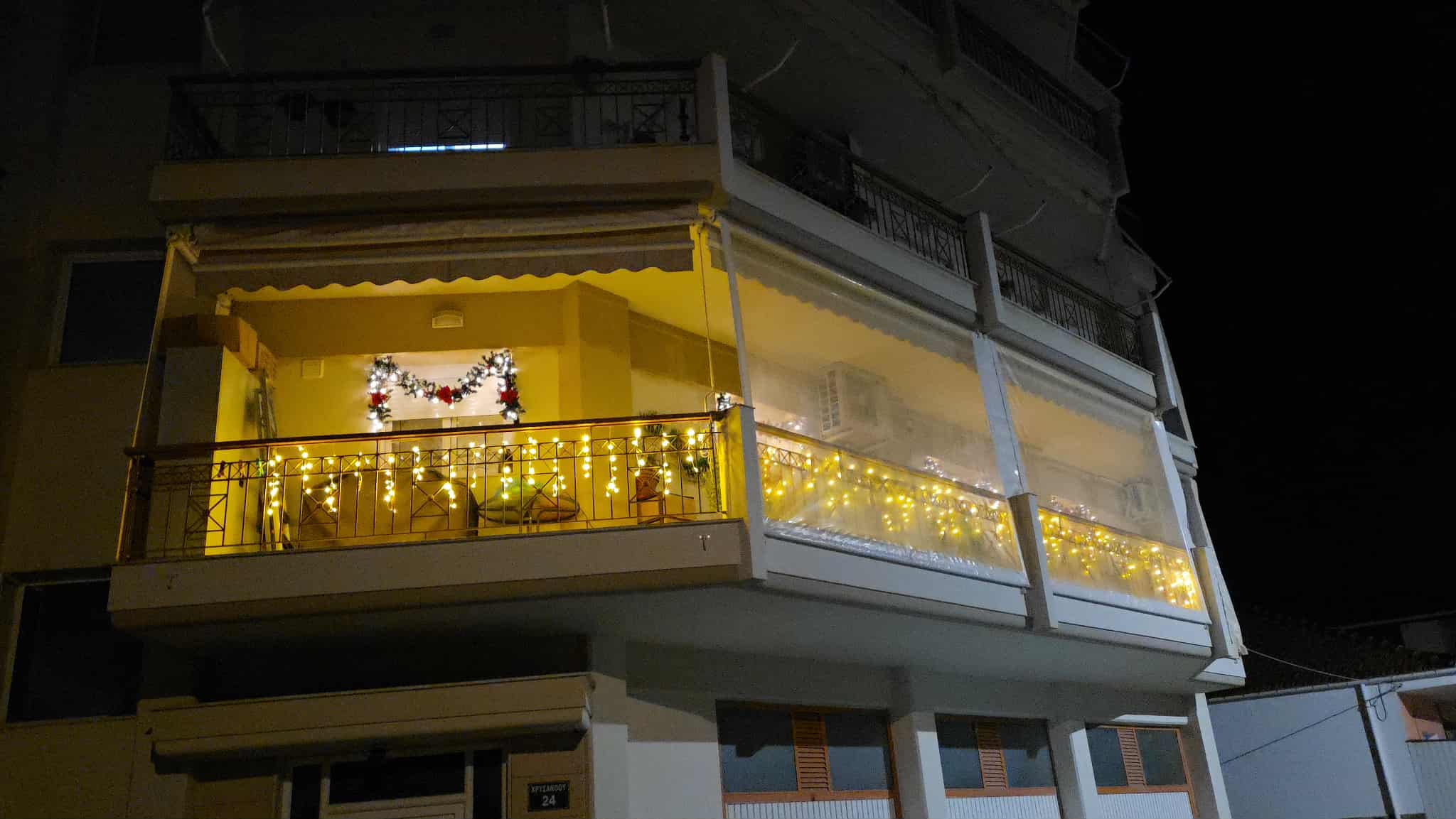 Παρά ταύτα, όσοι στόλισαν τα μπαλκόνια τους πρόσφεραν γιορτινή λάμψη και αισιοδοξία, θυμίζοντας πως ακόμη και λίγα φωτάκια αρκούν για να αλλάξουν την ατμόσφαιρα μιας ολόκληρης γειτονιάς.