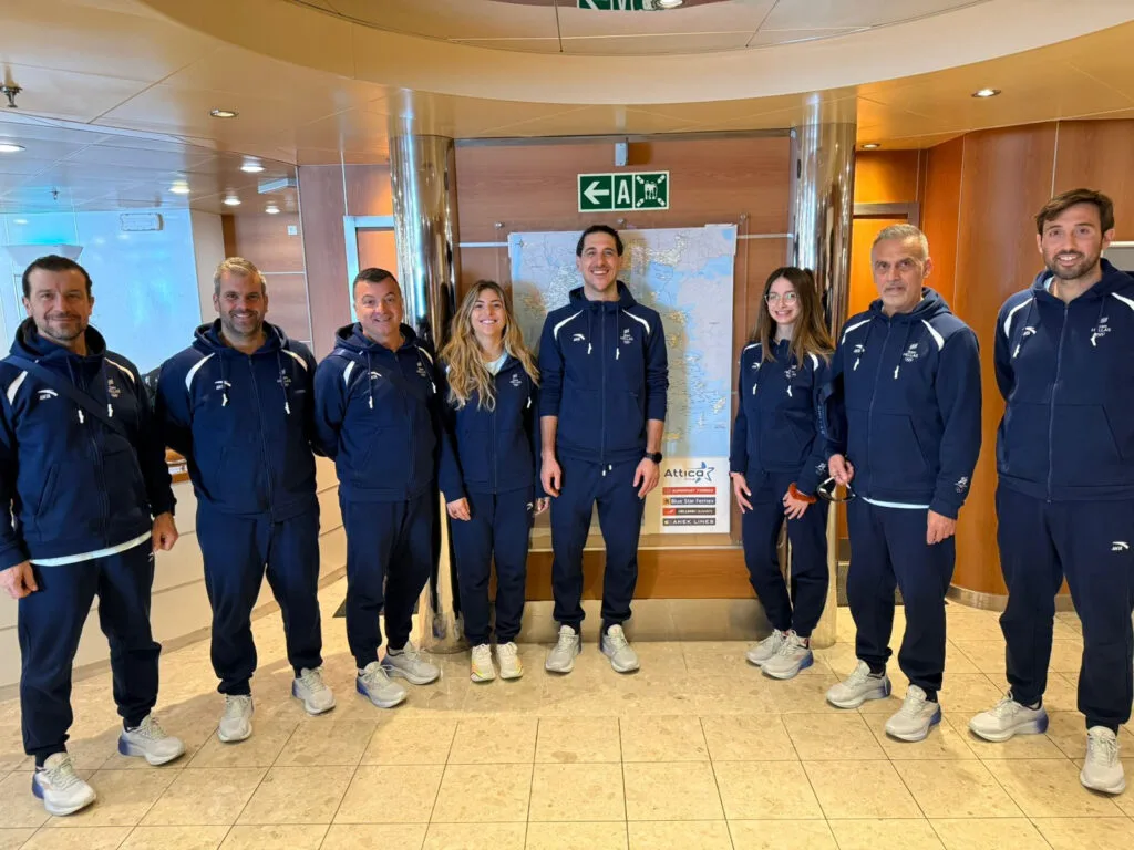 H ελληνική αποστολή έφτασε στην Ιταλία από την Ηγουμενίτσα με το πλοίο Superfast II του Attica Group με τον Αρχηγό Αποστολής Δημοσθένη Γυρούση και με όλο τον εξοπλισμό που χρειάζονται οι Ελληνες αθλητές.